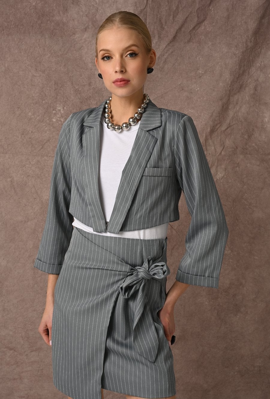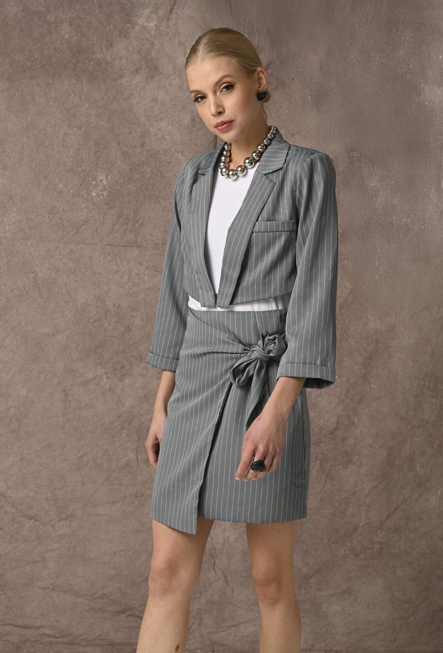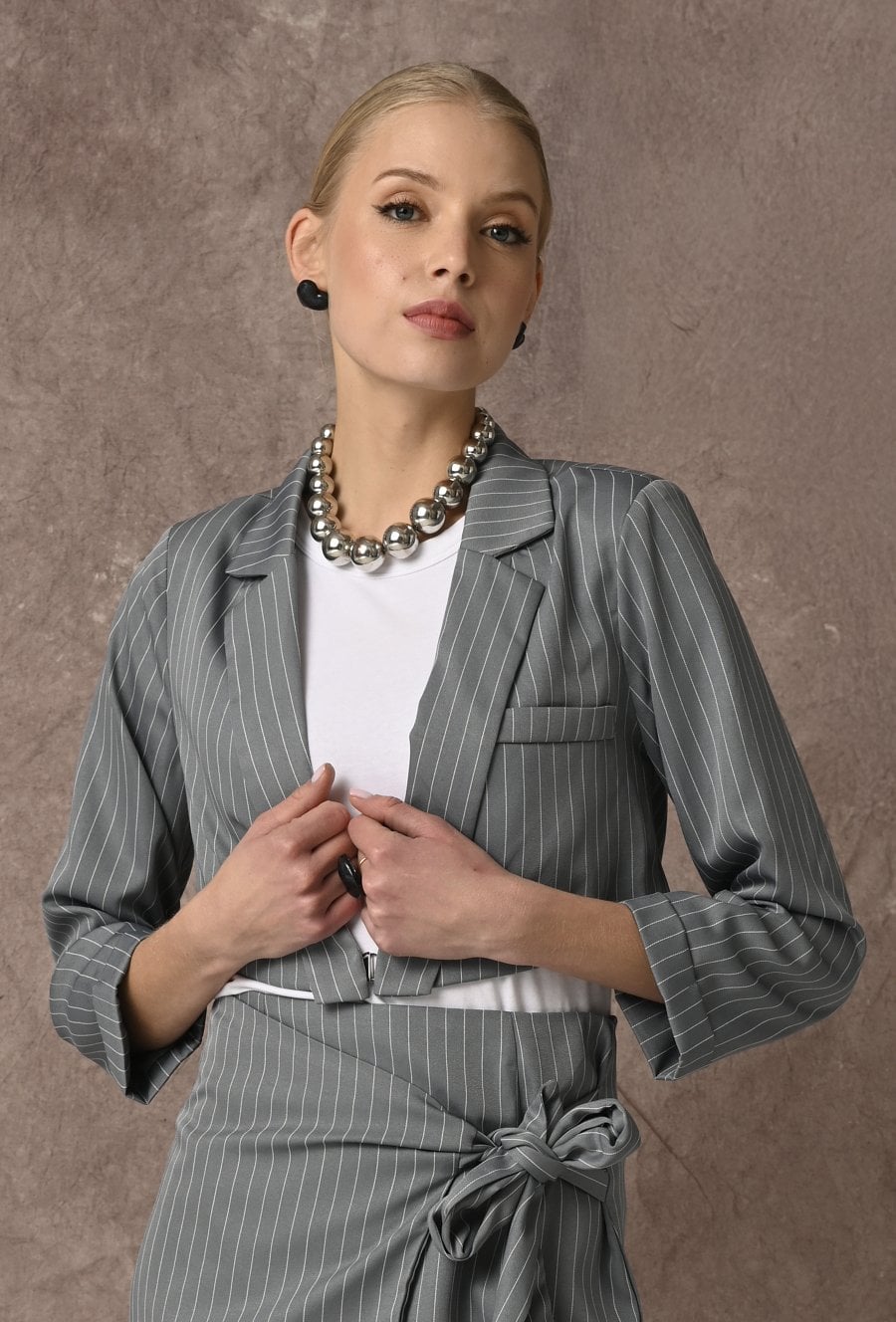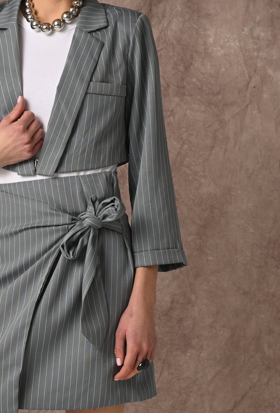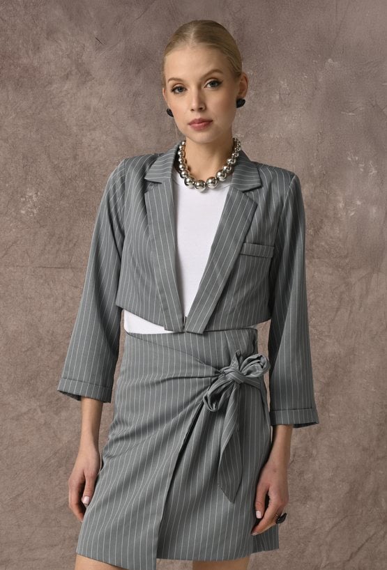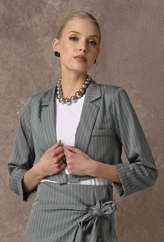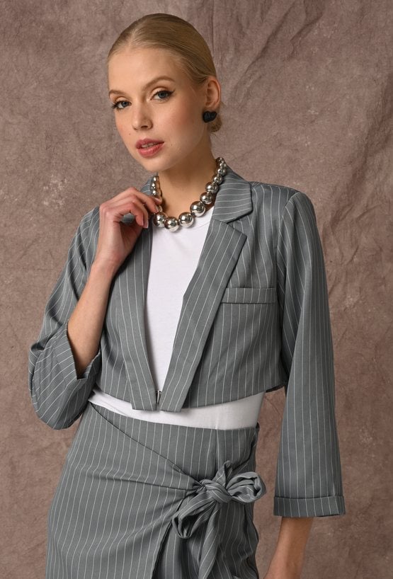 Krótka szara marynarka w prążek