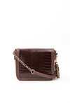 Mała, lakierowa torba damska typu crossbody z ozdobnymi dżetami na klapie. Torba zawieszona na pasku z elementem łańcuszka, jednokomorowa z jasną, logowaną podszewką oraz kieszonkami na drobiazgi. Torba z zapięciem na suwak. Torbę należy przechowywać w załączonym woreczku. Wymiary torby: 21 cm x 18.5 cm x 7 cm
