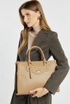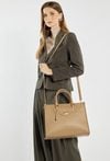 Stylowa torba damska z praktyczną, małą kieszonką z przodu, idealną na rzeczy, do których potrzebny jest szybki dostęp. Jednokomorowy model z jasną logowaną podszewką z dodatkowymi kieszonkami na drobiazgi. Model zawieszony na wygodnych rączkach, z dodatkowym, regulowanym paskiem w zestawie, który pozwala nosić torbę również na ramieniu. Uniwersalna i funkcjonalna – doskonała na co dzień. Torebkę należy przechowywać w dołączonym woreczku. Wymiary: 34 cm x 27 cm x 12 cm.
