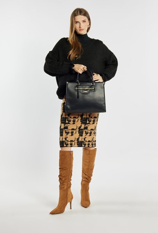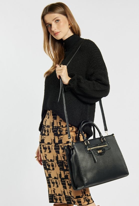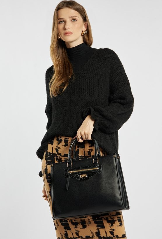 Stylowa torba damska z praktyczną, małą kieszonką z przodu, idealną na rzeczy, do których potrzebny jest szybki dostęp. Jednokomorowy model z jasną logowaną podszewką z dodatkowymi kieszonkami na drobiazgi. Model zawieszony na wygodnych rączkach, z dodatkowym, regulowanym paskiem w zestawie, który pozwala nosić torbę również na ramieniu. Uniwersalna i funkcjonalna – doskonała na co dzień. Torebkę należy przechowywać w dołączonym woreczku. Wymiary: 34 cm x 27 cm x 12 cm.