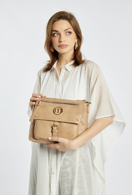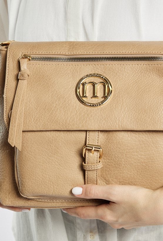 Damska torba na pasku z możliwością jego odpięcia, jednokomorowa, zapinana na suwak oraz klapę. Wewnątrz znajduje się kilka kieszonek na drobiazgi, a z przodu dodatkowe miejsce na akcesoria. Torba ozdobiona biżuteryjnym logo marki Monnari, co dodaje jej elegancji. Wymiary torby to 30 cm x 24 cm x 11 cm.