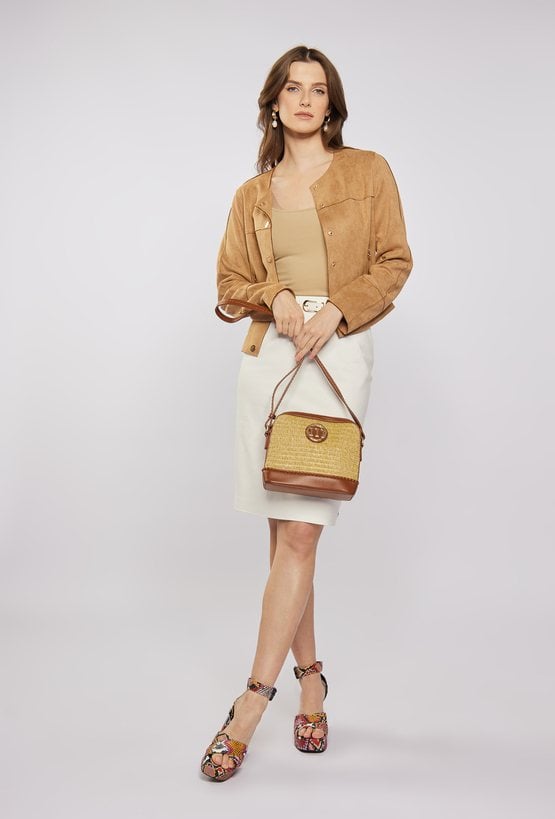 Kuferek damski z plecionym panelem