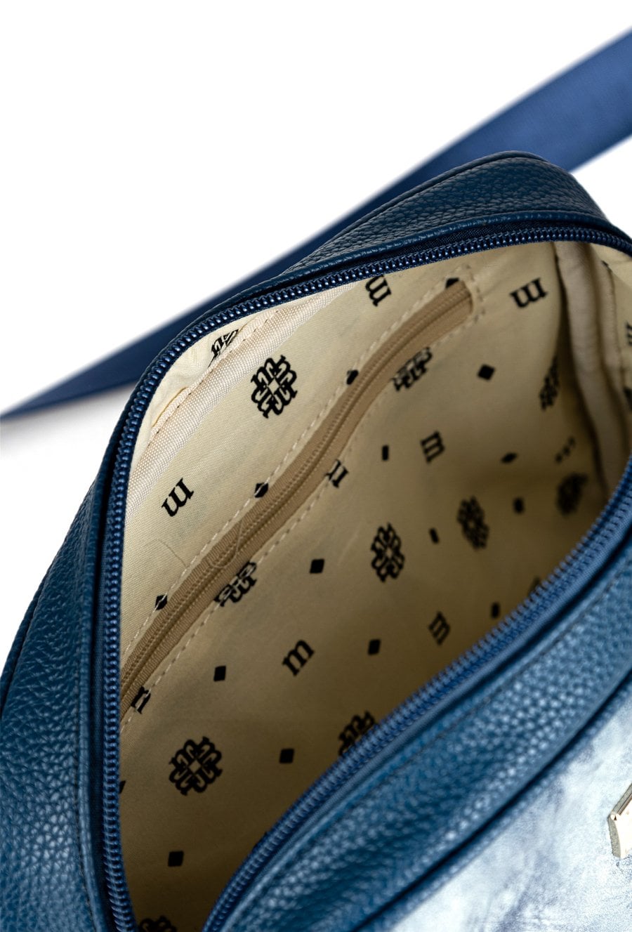 Mała torebka damska z oryginalnym printem, który nadaje jej wyjątkowego charakteru. Model jednokomorowy, z jasną, logowaną podszewką oraz dodatkowymi kieszonkami na drobiazgi. Zawieszona na regulowanym pasku, stanowi stylowy i praktyczny dodatek do codziennych stylizacji. Torbę należy przechowywać w załączonym woreczku ochronnym. Wymiary: 23 cm x 18,5 cm x 7 cm.