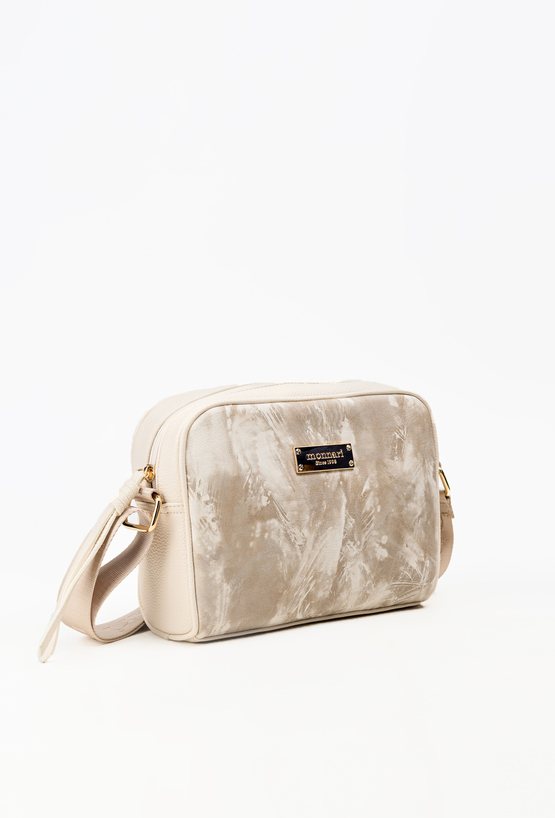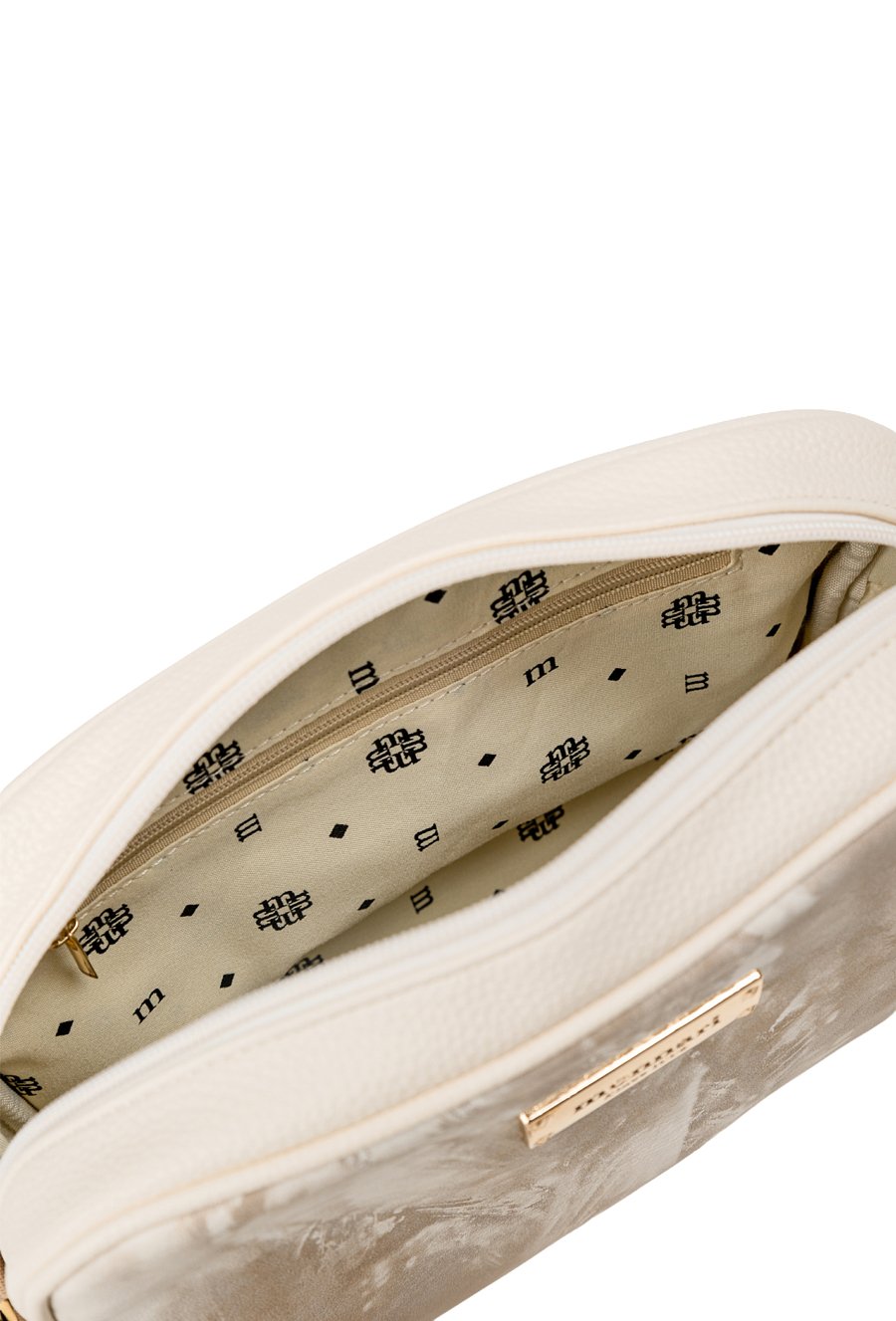 Mała torebka damska z oryginalnym printem, który nadaje jej wyjątkowego charakteru. Model jednokomorowy, z jasną, logowaną podszewką oraz dodatkowymi kieszonkami na drobiazgi. Zawieszona na regulowanym pasku, stanowi stylowy i praktyczny dodatek do codziennych stylizacji. Torbę należy przechowywać w załączonym woreczku ochronnym. Wymiary: 23 cm x 18,5 cm x 7 cm.
