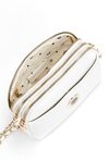 Mała torba damska typu crossbody. Torba trzykomorowa o jasnej, logowanej podszewce z dodatkowymi kieszonkami na drobiazgi w środku. Dodatkowo z przodu znajduje się mała kieszonka z zapięciem na napę. Torebka zawieszona na pasku z łańcuszkiem. Model ten należy przechowywać w załączonym woreczku. Wymiary torby: 22,5 cm x 15 cm x 5,5 cm.