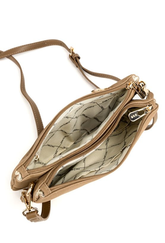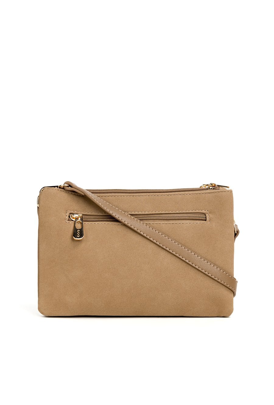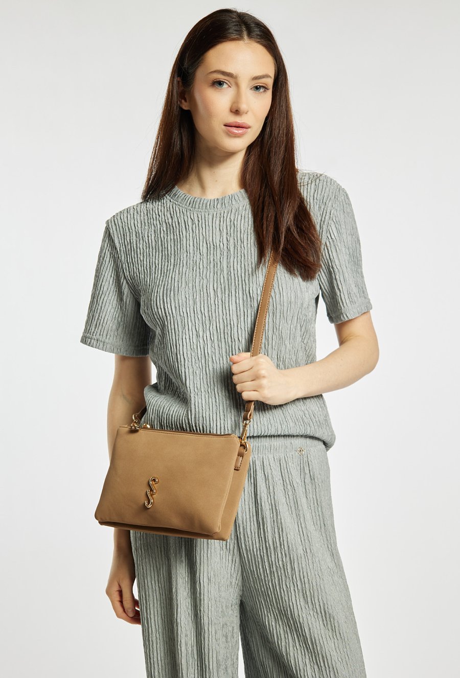 Mała torebka damska typu crossbody o wymiarach 25 × 17 × 3 cm to praktyczny dodatek na co dzień i na wyjścia. Torba jest dwukomorowa, ma jasne, logowane podszewki oraz dodatkowe kieszonki na drobiazgi, które ułatwiają organizację wnętrza. Torba zawieszona na odpinanym pasku z możliwością regulacji zapewnia wygodę noszenia na ramieniu. Torbę należy przechowywać w dołączonym woreczku.