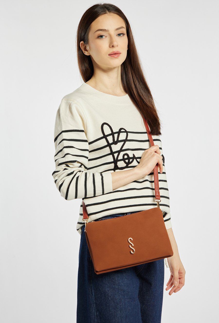 Mała torebka damska typu crossbody o wymiarach 25 × 17 × 3 cm to praktyczny dodatek na co dzień i na wyjścia. Torba jest dwukomorowa, ma jasne, logowane podszewki oraz dodatkowe kieszonki na drobiazgi, które ułatwiają organizację wnętrza. Torba zawieszona na odpinanym pasku z możliwością regulacji zapewnia wygodę noszenia na ramieniu. Torbę należy przechowywać w dołączonym woreczku.