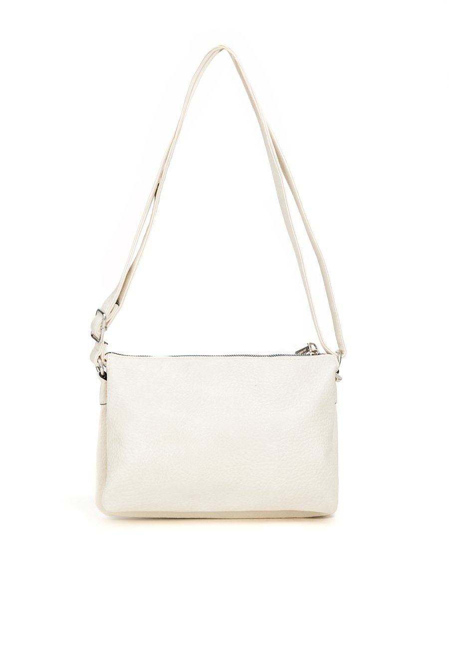 Mała torebka crossbody o wymiarach 25 × 15,5 × 5 cm to praktyczny model na co dzień. Torba jest jednokomorowa, ale wewnątrz podzielona na trzy przegródki, dzięki czemu łatwiej utrzymać porządek i szybko znaleźć potrzebne rzeczy. Torba zawieszona na regulowanym pasku ma z przodu kieszonkę, idealną na drobiazgi, które chcesz mieć zawsze pod ręką. Torbę należy przechowywać w dołączonym woreczku.
