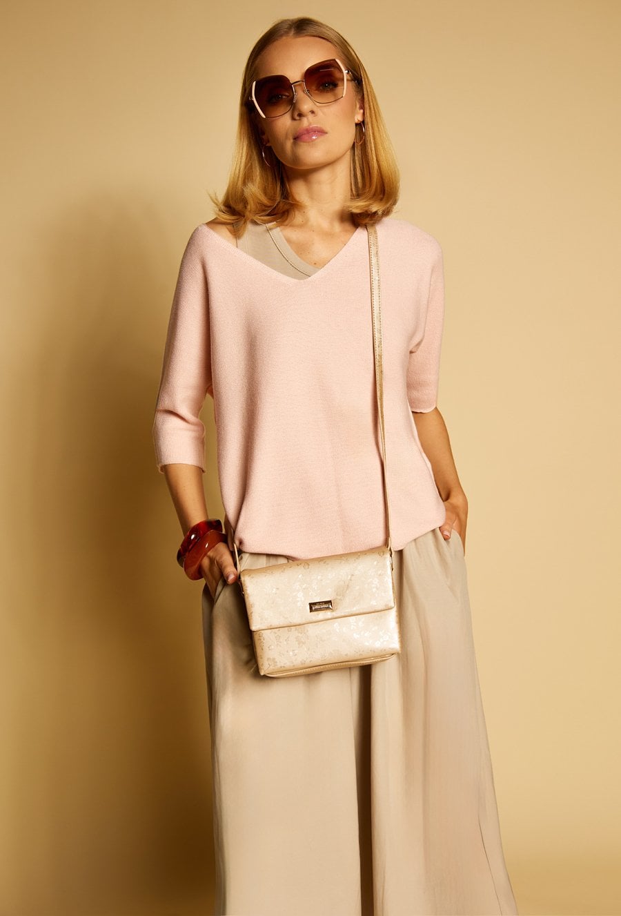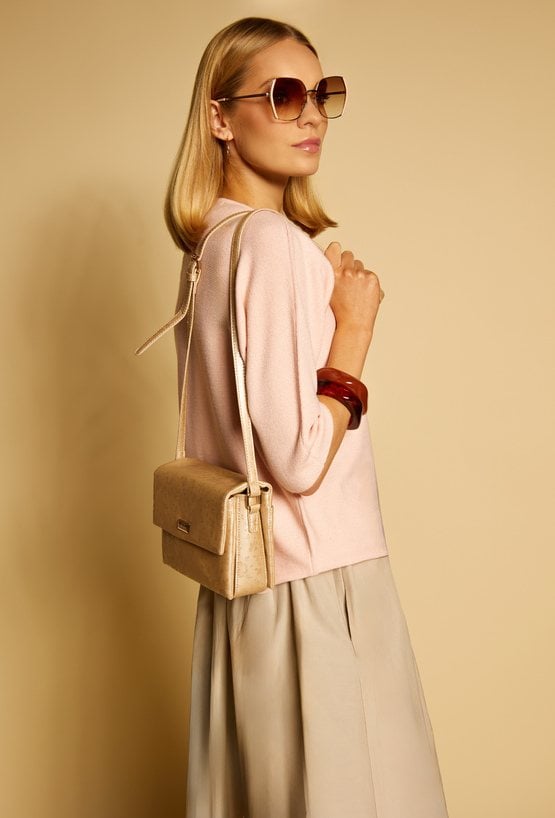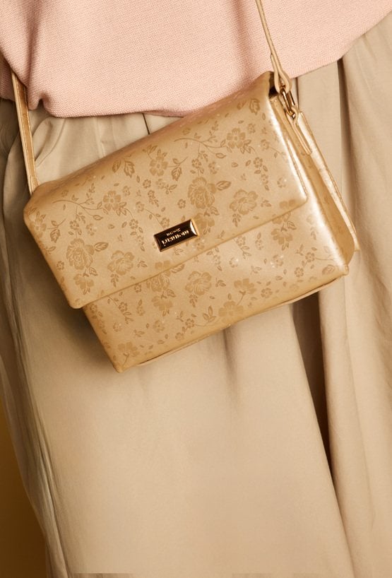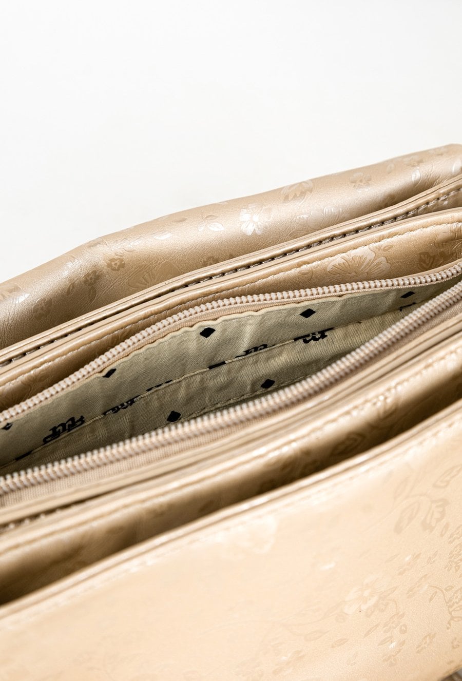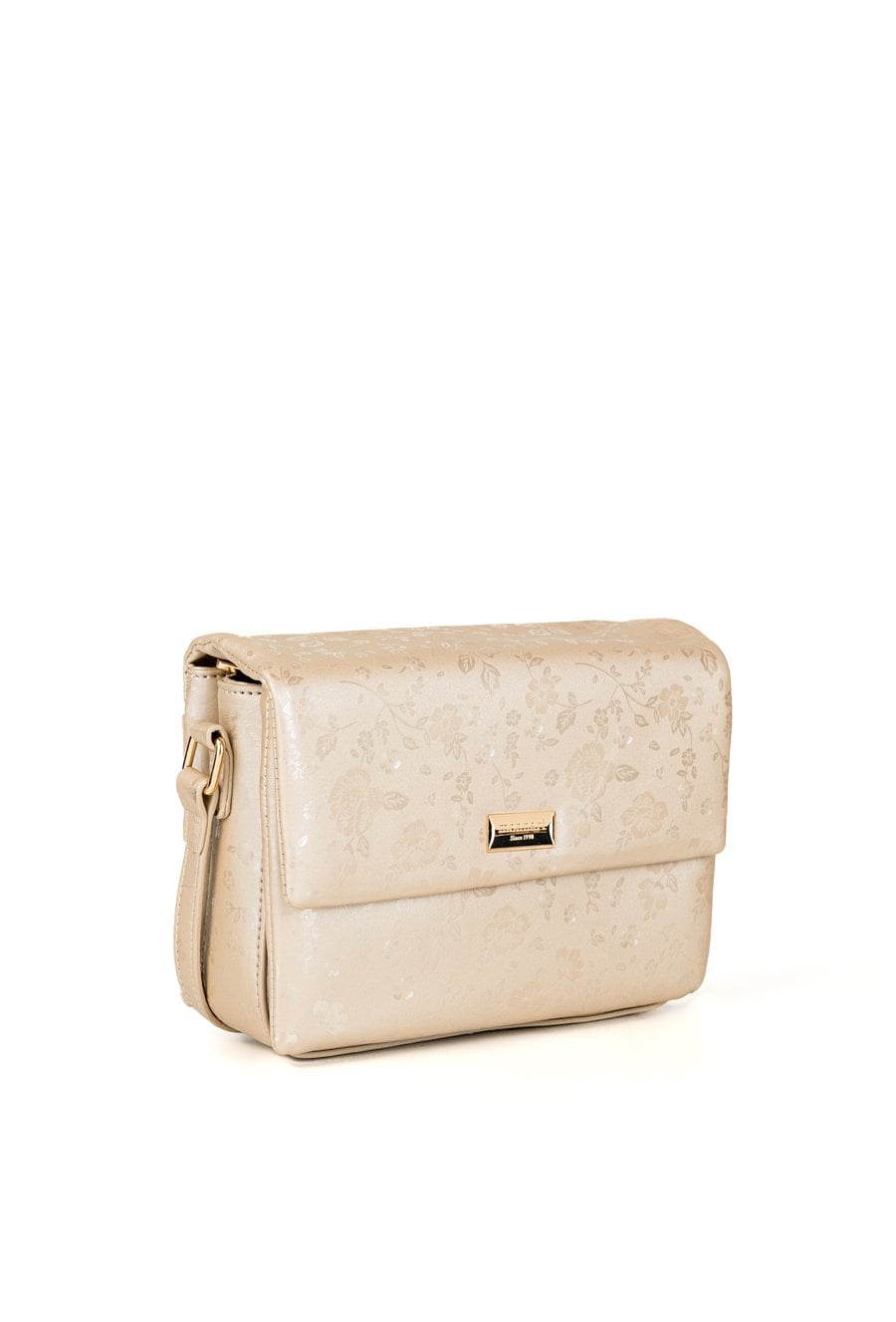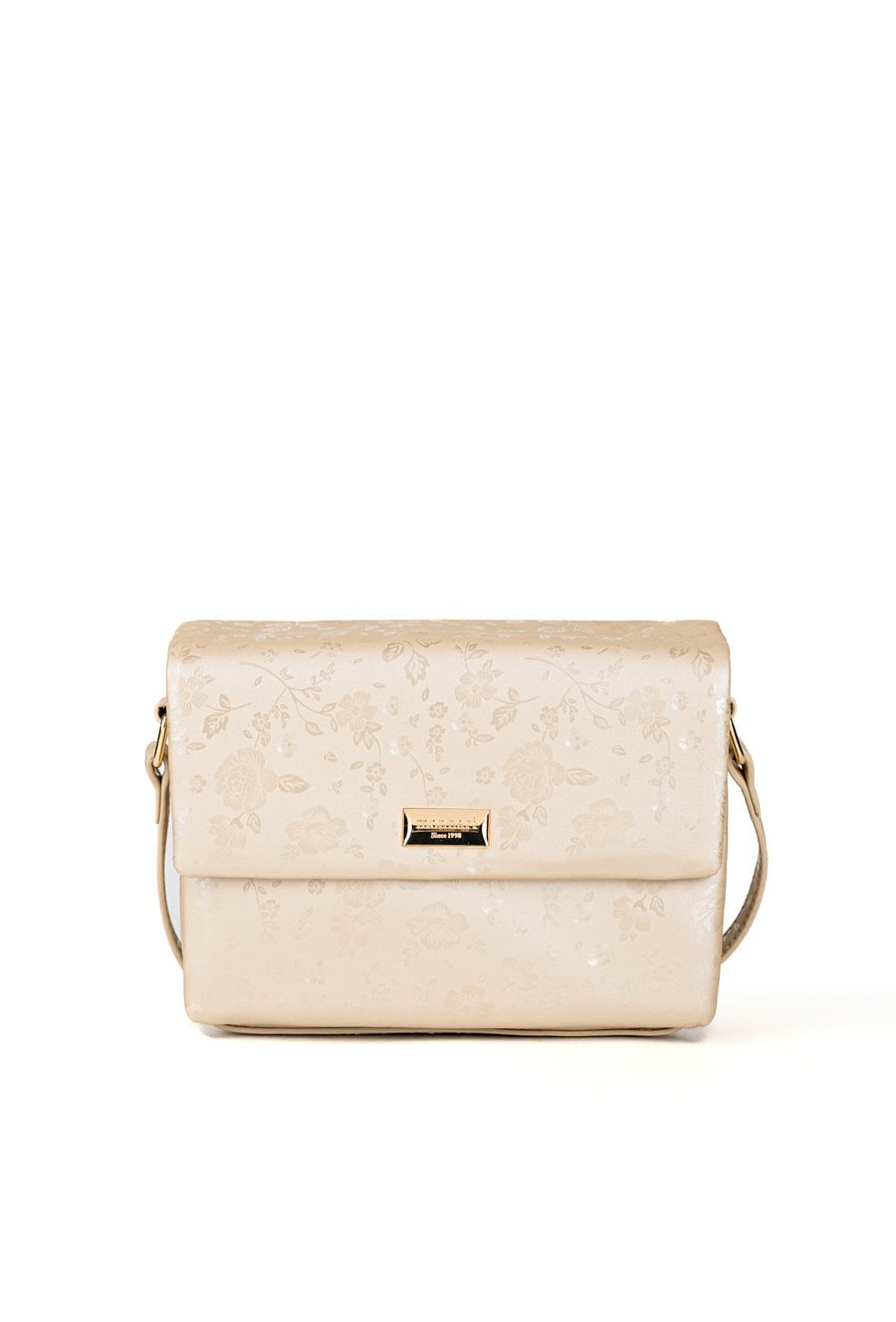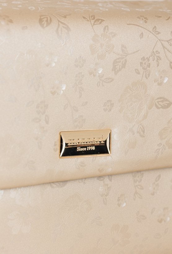 Mała torebka z kwiatowym printem. Torba trzykomorowa, z jasnymi, logowanymi podszewkami oraz dodatkowymi kieszonkami na drobiazgi. Dwie komory pozostają otwarte, natomiast środkowa zapinana jest na suwak, a całość zabezpiecza klapa z napą. Zawieszona na regulowanym pasku, torebka doskonale sprawdzi się zarówno na co dzień, jak i na specjalne okazje. Torbę należy przechowywać w załączonym woreczku ochronnym. Wymiary: 20,5cm x 14cm x 7cm