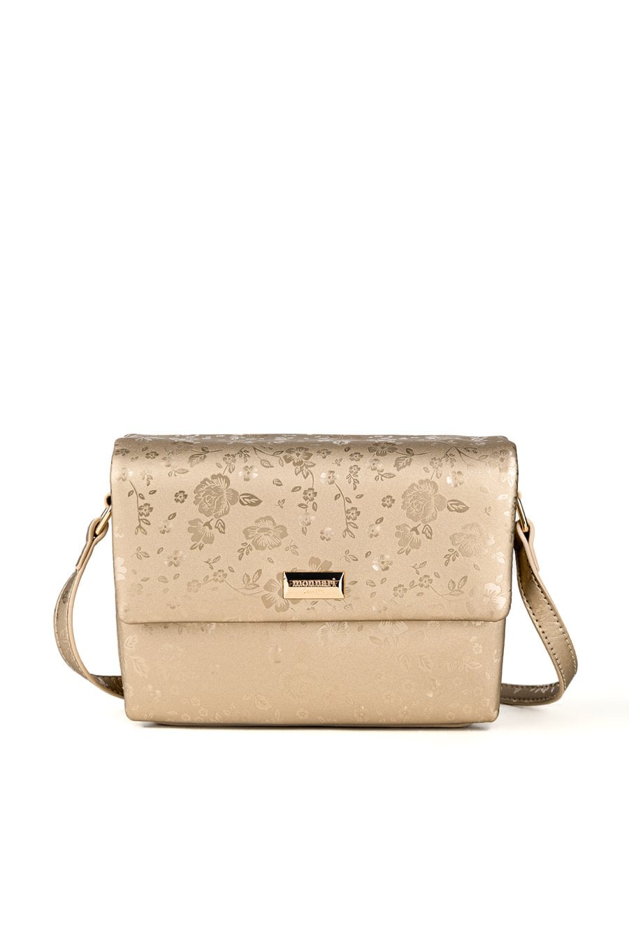 Mała torebka z kwiatowym printem. Torba trzykomorowa, z jasnymi, logowanymi podszewkami oraz dodatkowymi kieszonkami na drobiazgi. Dwie komory pozostają otwarte, natomiast środkowa zapinana jest na suwak, a całość zabezpiecza klapa z napą. Zawieszona na regulowanym pasku, torebka doskonale sprawdzi się zarówno na co dzień, jak i na specjalne okazje. Torbę należy przechowywać w załączonym woreczku ochronnym. Wymiary: 20,5cm x 14cm x 7cm