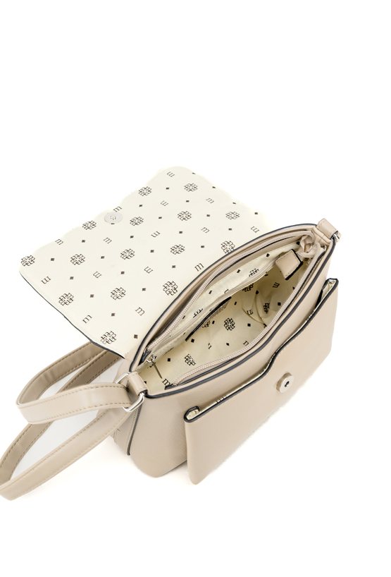 Mała torebka crossbody o wymiarach 29 × 19 × 7 cm to praktyczny model na co dzień. Torba jest jednokomorowa, ma klapę oraz jasną, logowaną podszewkę, a dodatkowa kieszonka z przodu świetnie sprawdzi się na drobiazgi. Torba wygodnie układa się przy sylwetce i pozwala mieć najpotrzebniejsze rzeczy zawsze pod ręką. Należy przechowywać w dołączonym woreczku.