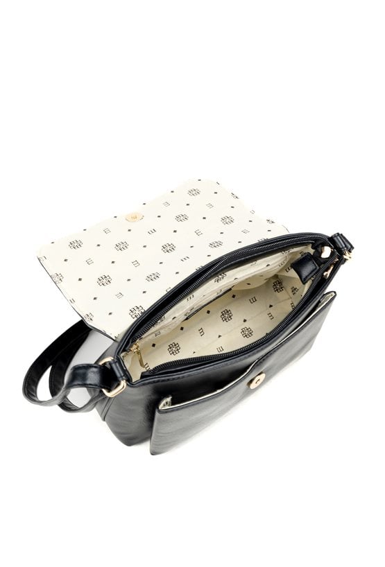 Mała torebka crossbody o wymiarach 29 × 19 × 7 cm to praktyczny model na co dzień. Torba jest jednokomorowa, ma klapę oraz jasną, logowaną podszewkę, a dodatkowa kieszonka z przodu świetnie sprawdzi się na drobiazgi. Torba wygodnie układa się przy sylwetce i pozwala mieć najpotrzebniejsze rzeczy zawsze pod ręką. Należy przechowywać w dołączonym woreczku.