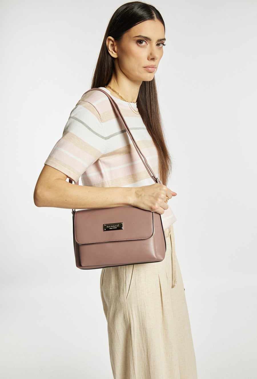 Mała torebka crossbody o wymiarach 29 × 19 × 7 cm to praktyczny model na co dzień. Torba jest jednokomorowa, ma klapę oraz jasną, logowaną podszewkę, a dodatkowa kieszonka z przodu świetnie sprawdzi się na drobiazgi. Torba wygodnie układa się przy sylwetce i pozwala mieć najpotrzebniejsze rzeczy zawsze pod ręką. Należy przechowywać w dołączonym woreczku.