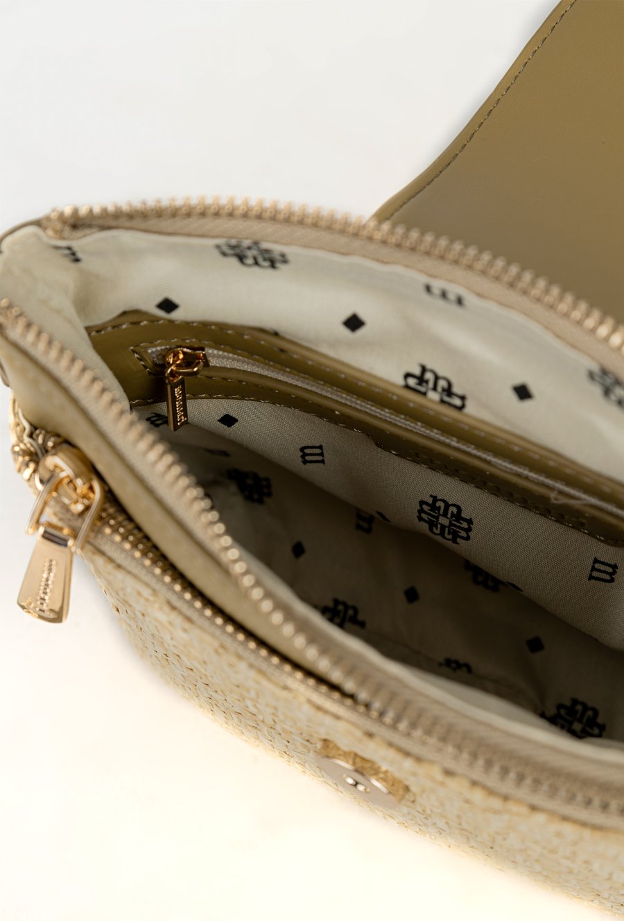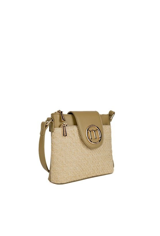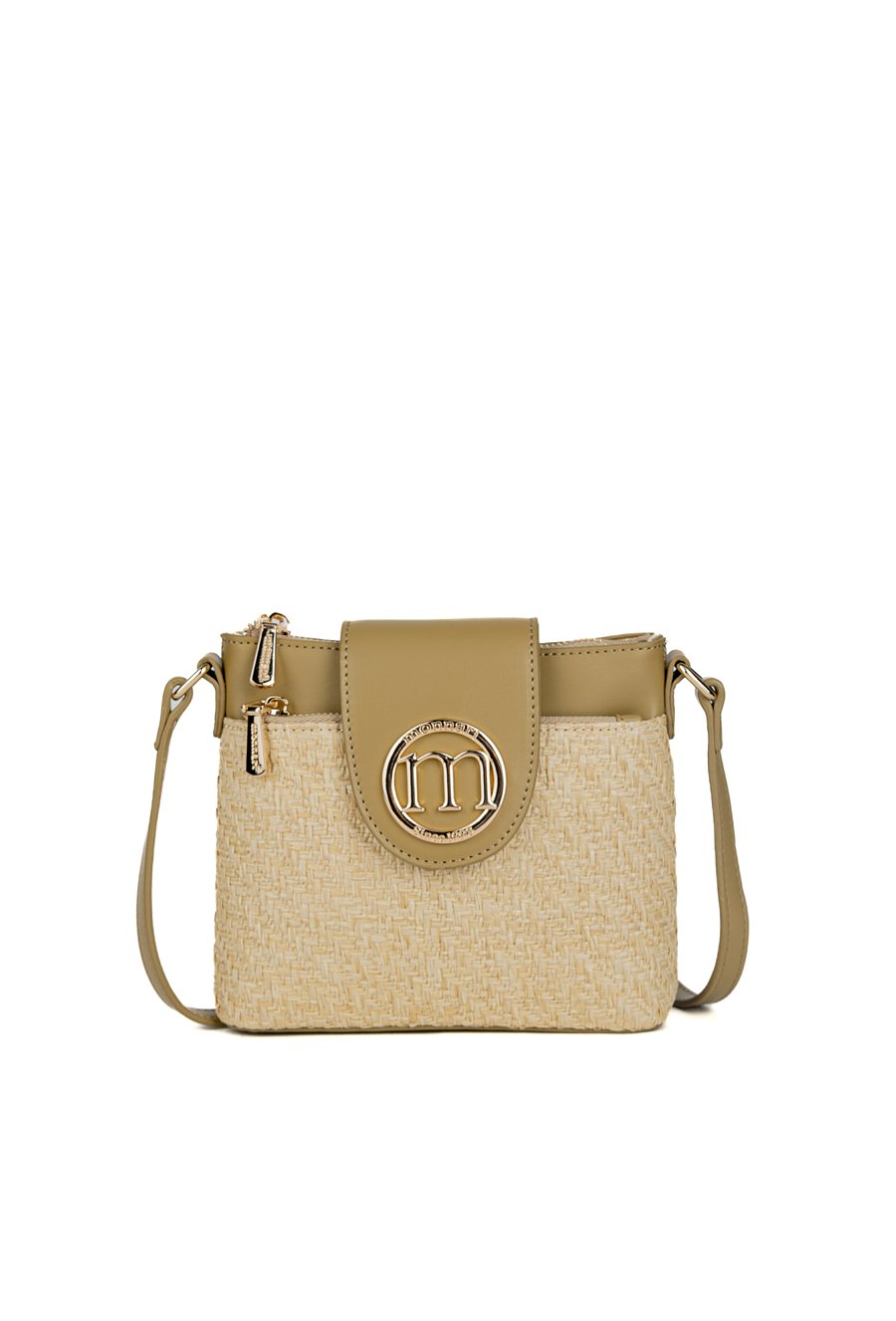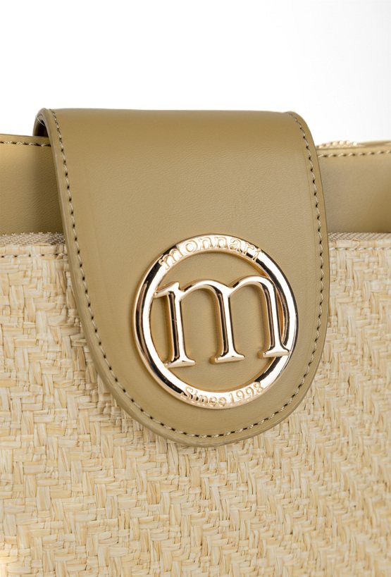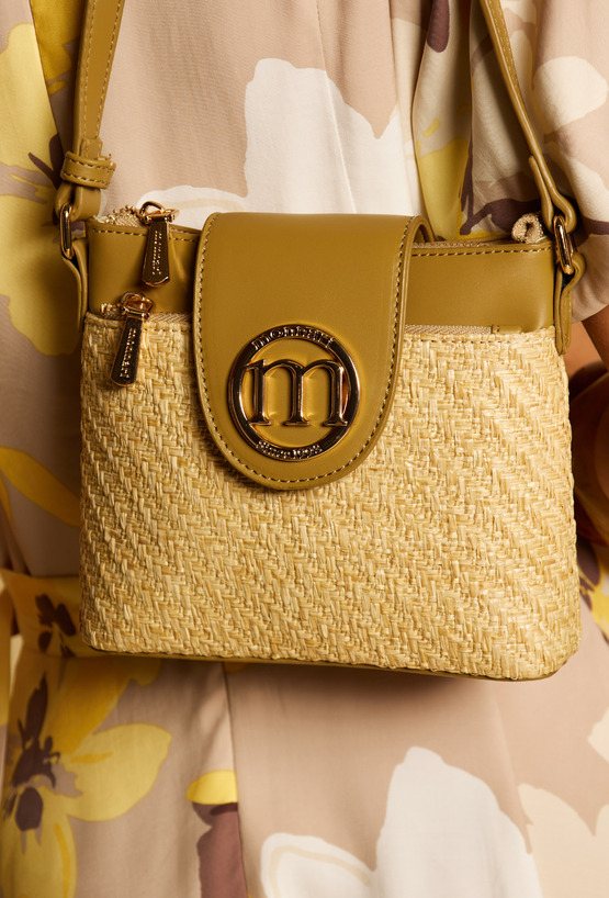 Mały koszyk damski z plecionym panelem, który nadaje mu letniego, stylowego charakteru. Torba jednokomorowa, z jasną, logowaną podszewką oraz dodatkowymi kieszonkami na drobiazgi, a także kieszonką z przodu. Model zapinany na suwak i klapę z logo marki Monnari, zawieszony na regulowanym pasku. Torbę należy przechowywać w dołączonym woreczku.