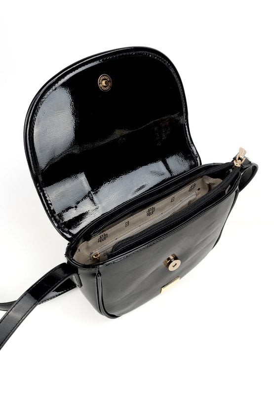 Damska torba z jednokomorowym wnętrzem zapinanym na klapę z napą, które chroni zawartość i ułatwia dostęp do środka. Wewnątrz znajduje się praktyczna kieszonka na suwak, idealna na drobne przedmioty. Torbę należy przechowywać w dołączonym woreczku.