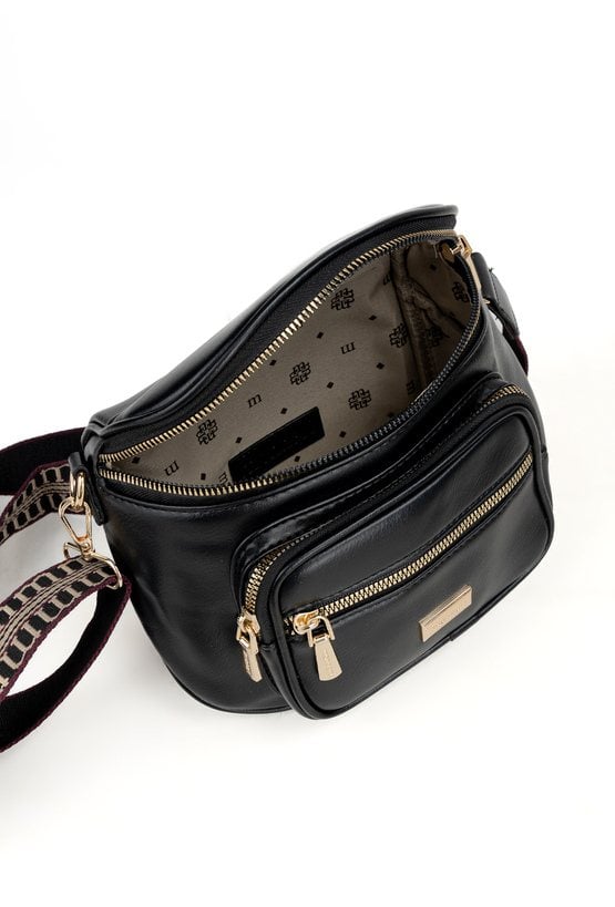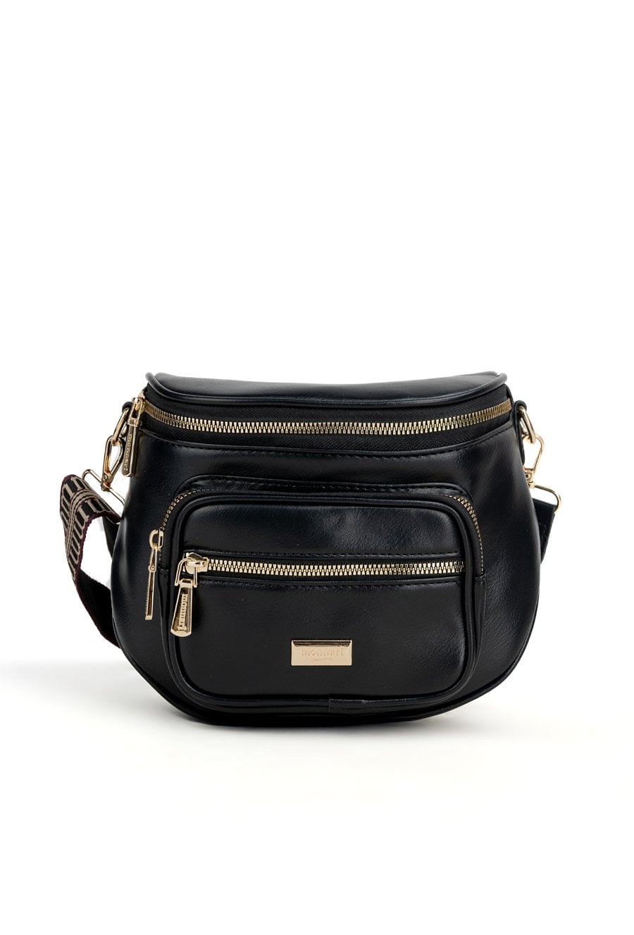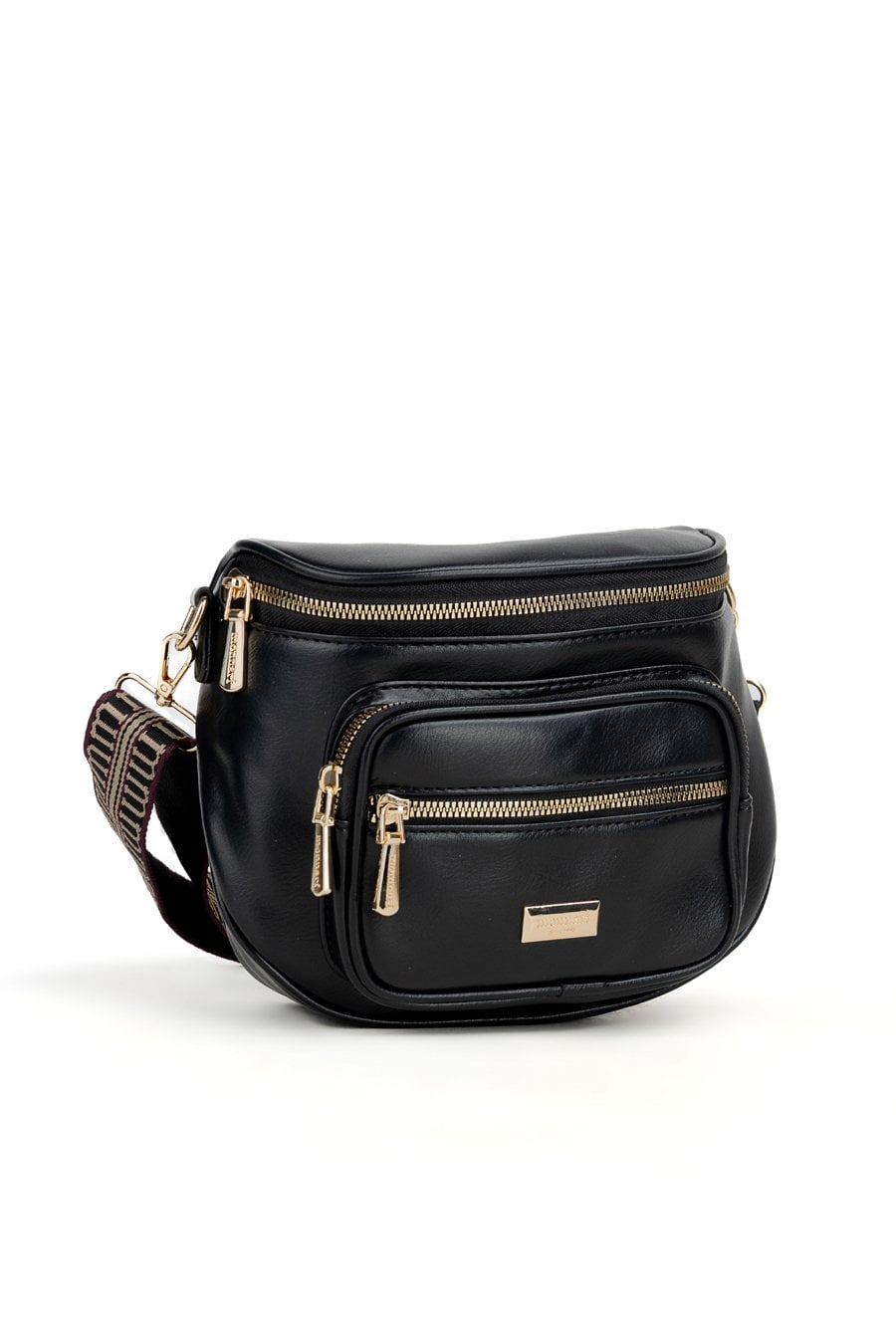 Stylowa torba damska o wymiarach 26 × 18 × 8 cm. Torba z praktycznymi kieszonkami z przodu zapinanymi na suwak, idealnymi na drobne przedmioty, oraz jednokomorowym wnętrzem zapewniającym łatwy dostęp do zawartości. Torbę należy przechowywać w dołączonym woreczku.