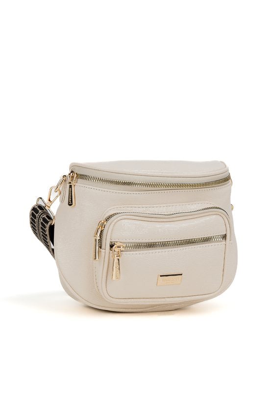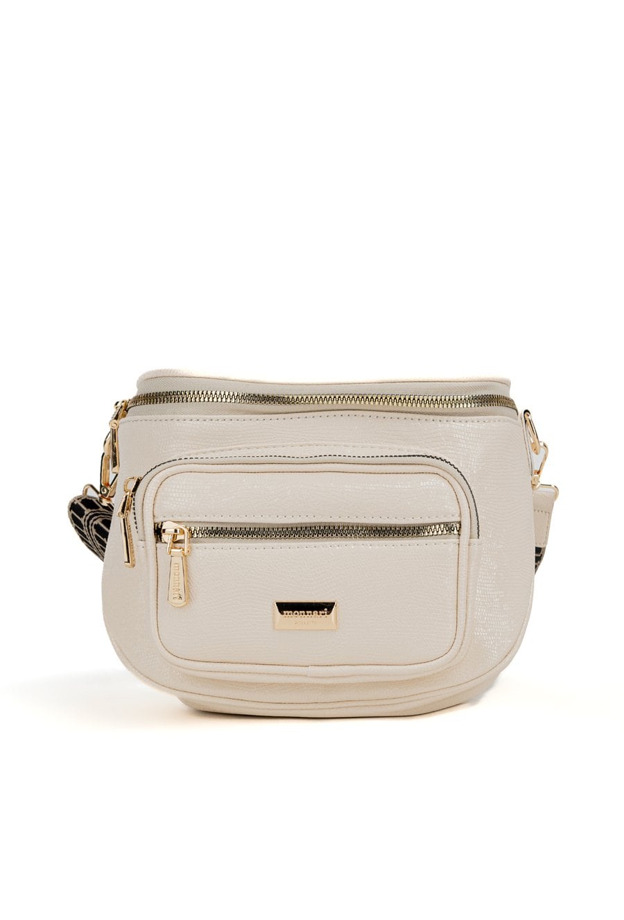 Stylowa torba damska o wymiarach 26 × 18 × 8 cm. Torba z praktycznymi kieszonkami z przodu zapinanymi na suwak, idealnymi na drobne przedmioty, oraz jednokomorowym wnętrzem zapewniającym łatwy dostęp do zawartości. Torbę należy przechowywać w dołączonym woreczku.