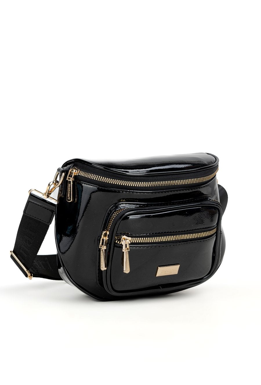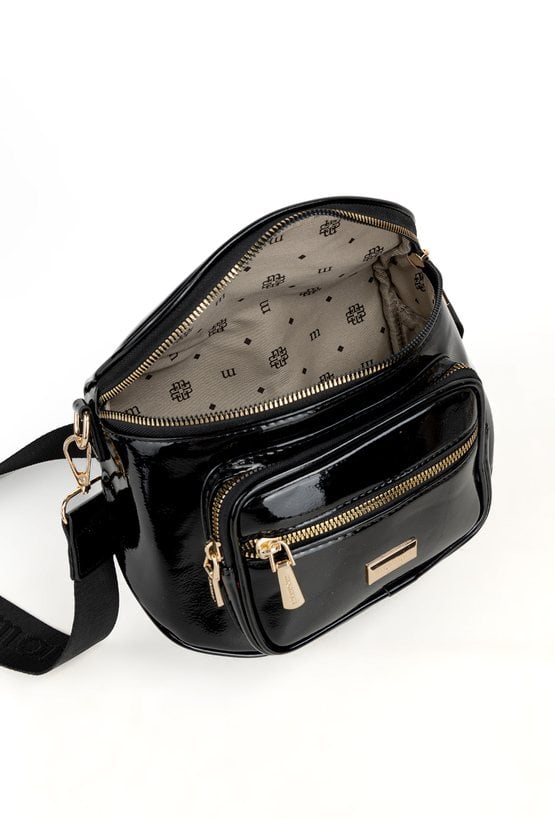 Stylowa torba damska o wymiarach 26 × 18 × 8 cm. Torba z praktycznymi kieszonkami z przodu zapinanymi na suwak, idealnymi na drobne przedmioty, oraz jednokomorowym wnętrzem zapewniającym łatwy dostęp do zawartości. Torbę należy przechowywać w dołączonym woreczku.