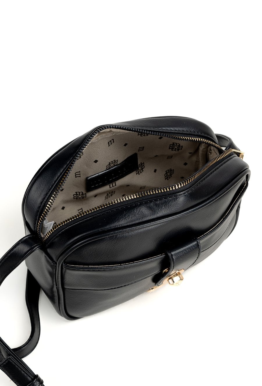 Torba damska o wymiarach 23 × 16 × 7 cm z jednokomorowym wnętrzem zapinanym na suwak, zapewniającym wygodny dostęp do zawartości. Torba zawieszona na regulowanym pasku, z praktyczną kieszonką z przodu ozdobioną efektownym twistem; zaleca się przechowywanie w dołączonym woreczku ochronnym.