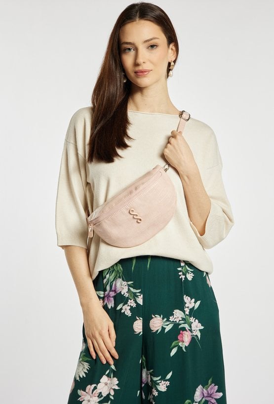 Torba damska typu nerka o wymiarach 25 × 13 × 5 cm to wygodny i stylowy wybór na co dzień oraz w podróży. Torba jest jednokomorowa, ma jasną, logowaną podszewkę oraz dodatkowe kieszonki na drobiazgi, które ułatwiają organizację. Torba zawieszona na regulowanym, odpinanym pasku pozwala nosić ją na biodrach lub przez ramię, dopasowując do własnych potrzeb. Torbę należy przechowywać w dołączonym woreczku.