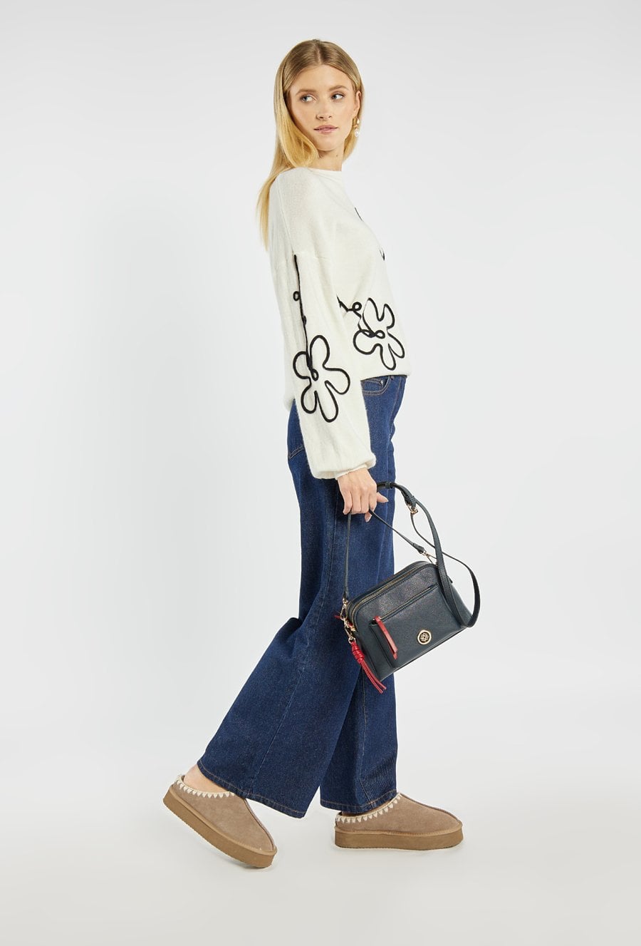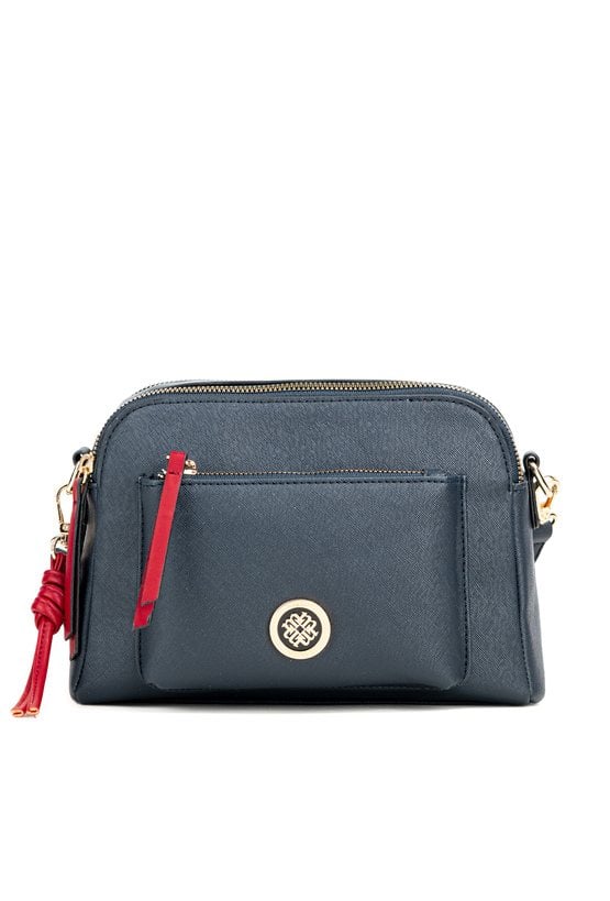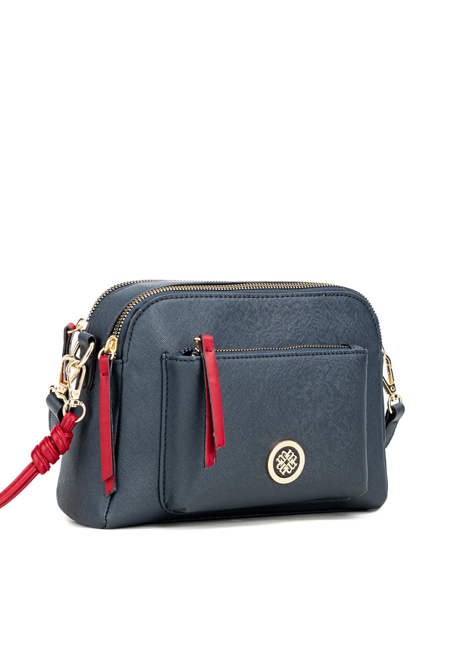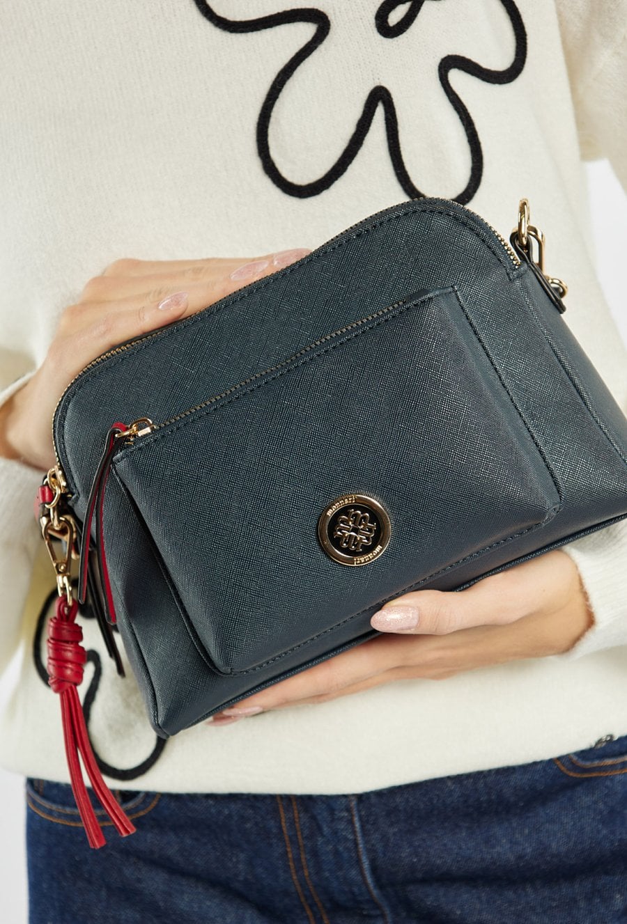Torba damska idealna na co dzień. Model dwukomorowy, z jasnymi, logowanymi podszewkami oraz dodatkowymi kieszonkami na drobiazgi. Wyposażona w regulowany pasek z możliwością odpięcia, co pozwala dopasować sposób noszenia do własnych potrzeb. Torebkę należy przechowywać w dołączonym woreczku. Wymiary: 22 cm x 18 cm x 6 cm.