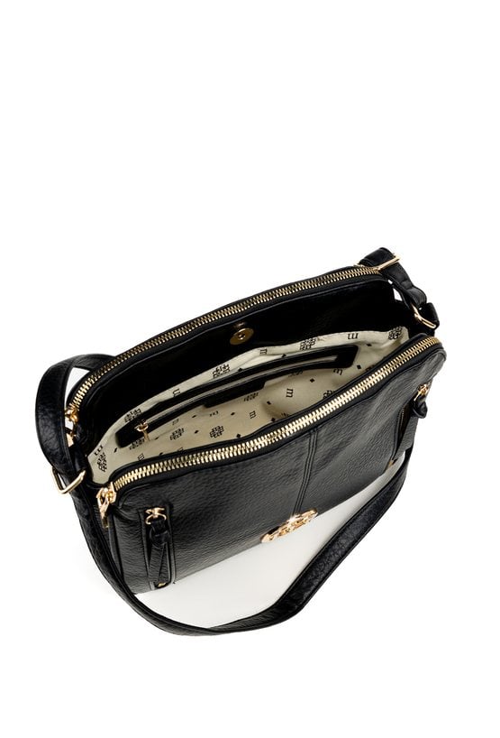 Torba damska typu shopper na regulowanym pasku. Torba jest trzykomorowa, ma jasne, logowane podszewki oraz dodatkowe kieszonki, które ułatwiają organizację. Torba ma dwie komory zapinane na suwak oraz środkową komorę zapinaną na napę, dzięki czemu wszystko pozostaje bezpiecznie uporządkowane. Należy przechowywać w dołączonym woreczku. Wymiary: 27 cm x 22 cm x 7,5 cm.