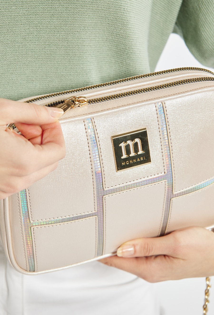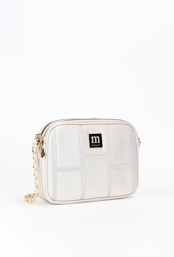 Torba damska typu crossbody zawieszona na pasku z łańcuszkiem. Model dwukomorowy, wyposażony w jasne, logowane podszewki, zapewnia wygodę organizacji dzięki dodatkowym kieszonkom idealnym na drobiazgi. Delikatne połyskujące detale podkreślają jej wyjątkowy charakter. Torbę należy przechowywać w załączonym woreczku. Wymiary: 25 cm x 18 cm x 5 cm.