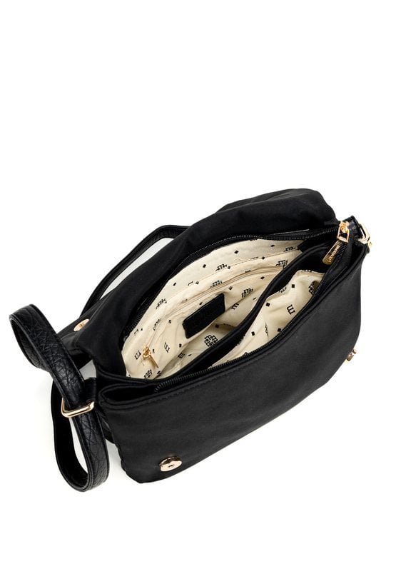 Torba damska typu crossbody z klapą to praktyczny model na co dzień i na wyjścia. Torba jest jednokomorowa, podzielona na pół, co ułatwia organizację i szybki dostęp do rzeczy. Torba zawieszona na regulowanym pasku, a dodatkowym atutem jest kieszonka umieszczona w klapie. Torbę należy przechowywać w dołączonym woreczku. Wymiary: 27 cm x 19,5 cm x 7 cm.
