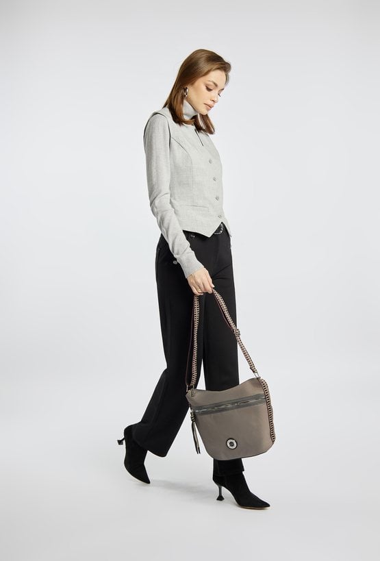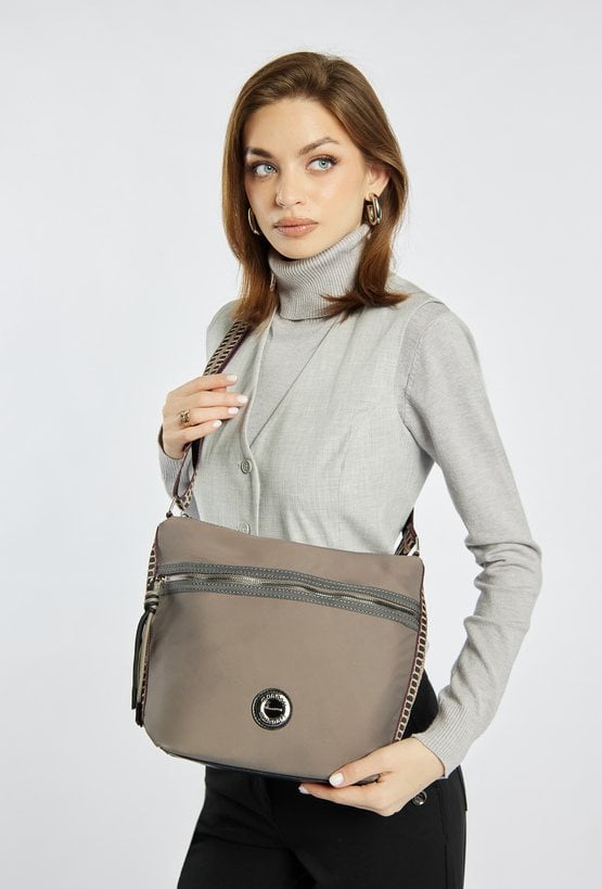 Torba damska z kolekcji Active. Torba jednokomorowa o jasnej, logowanej podszewce z dodatkowymi kieszonkami na drobiazgi. Torba zaiweszona na wrzostym, regulowanym pasku. Torba z zapinana kieszonką z przodu. Torba o wymiarach: 33 cm x 25,5 cm x 12 cm.