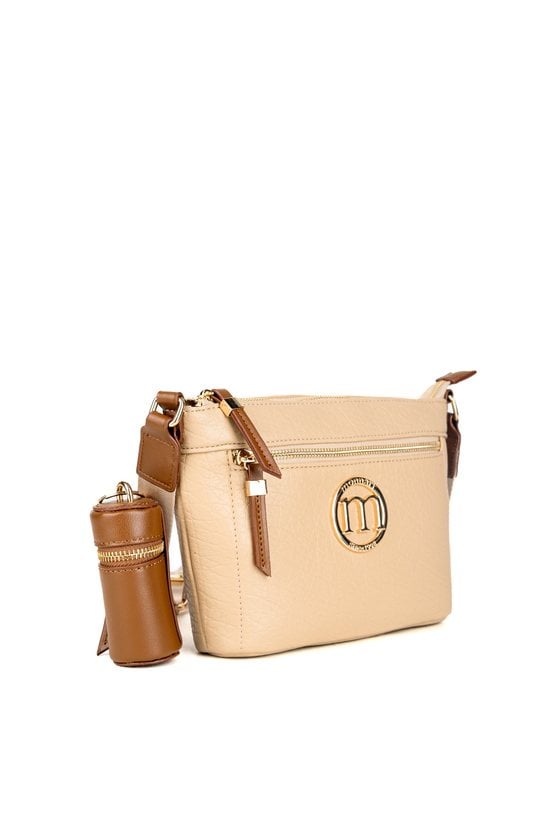 Torba damska typu crossbody o wymiarach 25 cm x 17 cm x 5 cm. Torba jednokomorowa, z jasną, logowaną podszewką oraz dodatkowymi kieszonkami na drobiazgi. Torba zawieszona na regulowanym pasku, na którym umieszczono małą, dopinaną saszetkę, stanowiącą praktyczne uzupełnienie całości. Idealna na co dzień. Torbę należy przechowywać w załączonym woreczku.