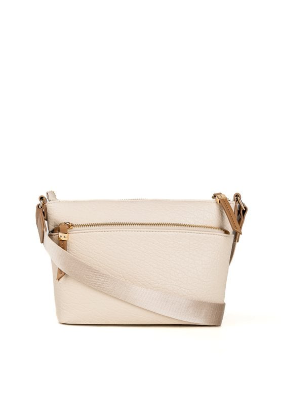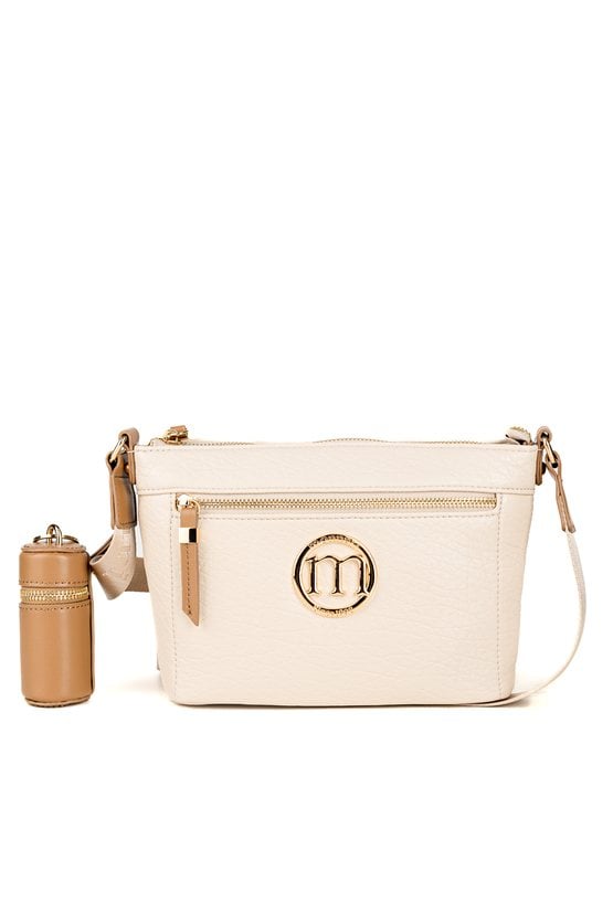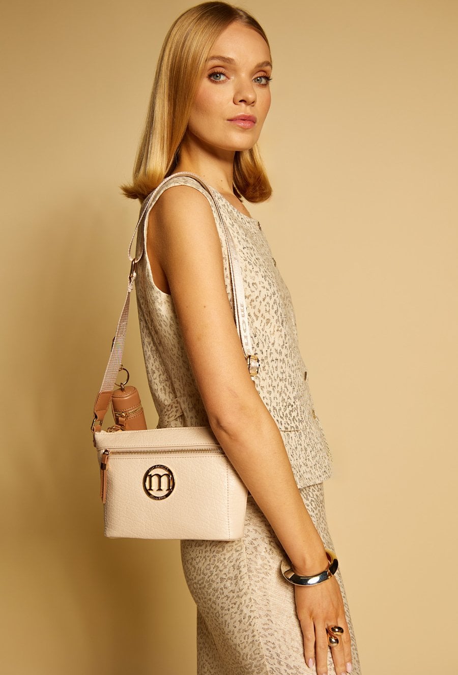 Torba damska typu crossbody o wymiarach 25 cm x 17 cm x 5 cm. Torba jednokomorowa, z jasną, logowaną podszewką oraz dodatkowymi kieszonkami na drobiazgi. Torba zawieszona na regulowanym pasku, na którym umieszczono małą, dopinaną saszetkę, stanowiącą praktyczne uzupełnienie całości. Idealna na co dzień. Torbę należy przechowywać w załączonym woreczku.