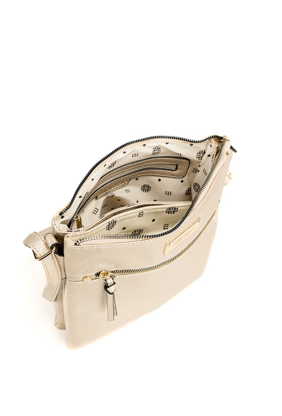 Torba damska crossbody na regulowanym pasku to praktyczny model na co dzień. Torba jest dwukomorowa, ma jasne, logowane podszewki oraz dodatkowe kieszonki na drobiazgi, które ułatwiają organizację. Torbę należy przechowywać w dołączonym woreczku. Wymiary: 25,5 cm x 28 cm x 2 cm.