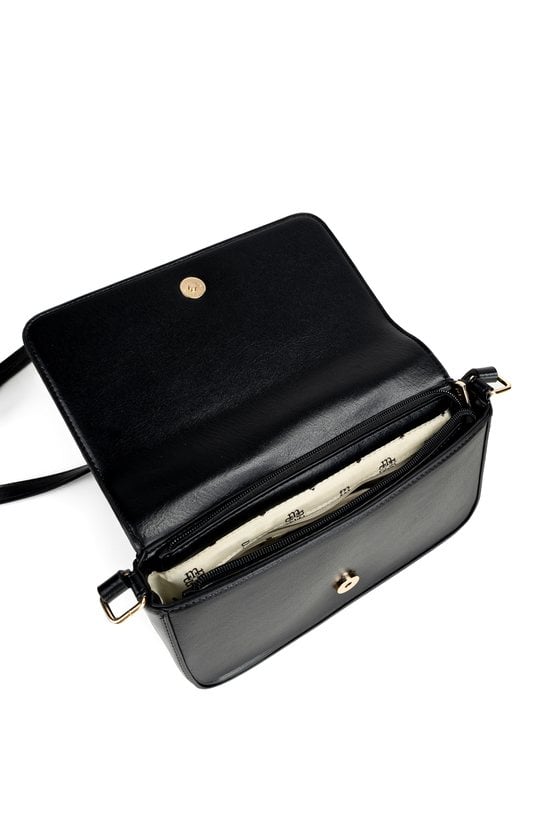 Torebka damska z klapą to praktyczny wybór na co dzień i na wyjścia. Torba jest jednokomorowa, ma jasną, logowaną podszewkę oraz dodatkowe kieszonki na drobiazgi, które ułatwiają organizację. Torba zawieszona na regulowanym pasku zapewnia wygodne noszenie na ramieniu lub crossbody. Torbę należy przechowywać w dołączonym woreczku. Wymiary: 24 cm x 14 cm x 5,5 cm.