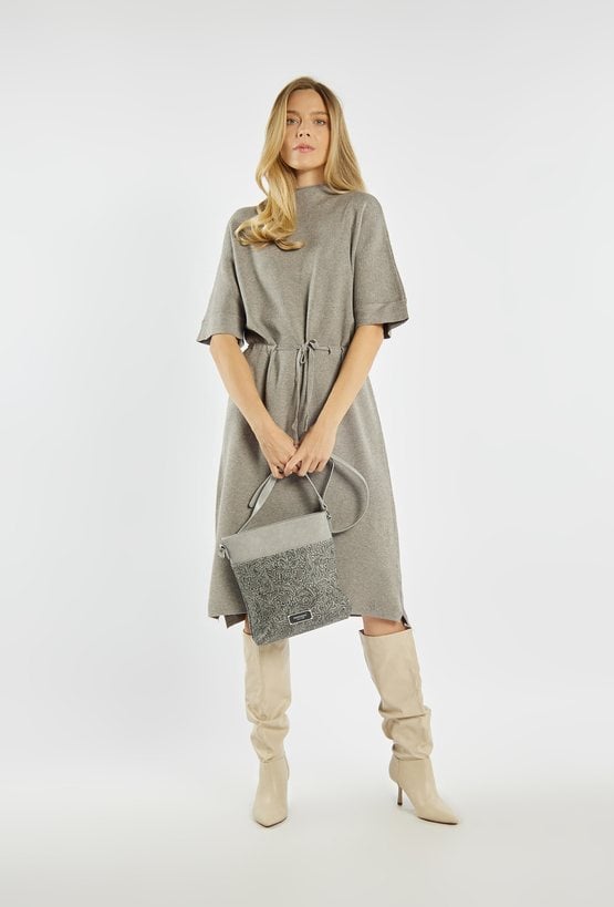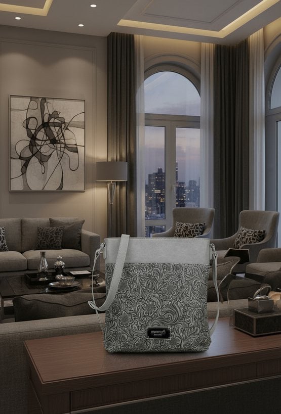 Stylowa torba o jednokomorowej budowie to praktyczny dodatek na co dzień. Wnętrze wykończone jest jasną, logowaną podszewką i wyposażone w wygodne kieszonki, które pomogą utrzymać porządek i szybko znaleźć drobiazgi. Torba ma regulowany pasek na ramię, dzięki czemu można dopasować jej długość do własnych potrzeb. Torbę należy przechowywać w dołączonym woreczku. Wymiary: 28 cm x 30 cm x 8 cm.