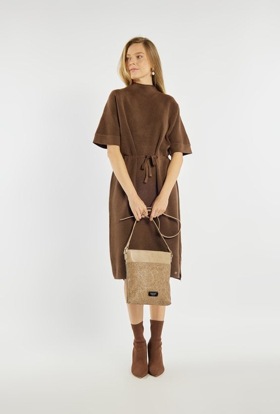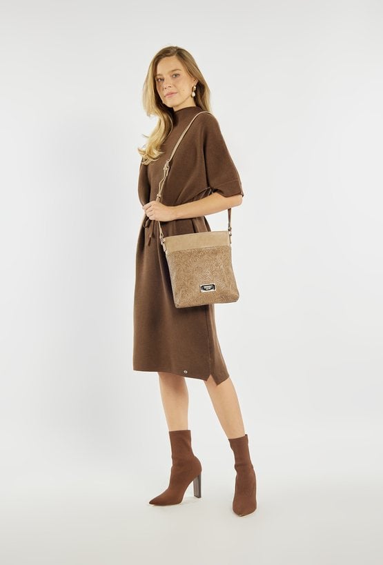 Stylowa torba o jednokomorowej budowie to praktyczny dodatek na co dzień. Wnętrze wykończone jest jasną, logowaną podszewką i wyposażone w wygodne kieszonki, które pomogą utrzymać porządek i szybko znaleźć drobiazgi. Torba ma regulowany pasek na ramię, dzięki czemu można dopasować jej długość do własnych potrzeb. Torbę należy przechowywać w dołączonym woreczku. Wymiary: 28 cm x 30 cm x 8 cm.