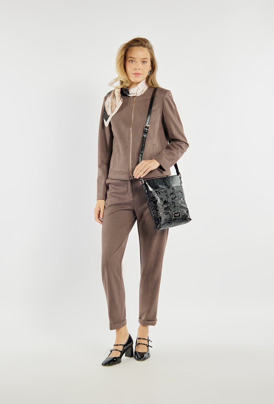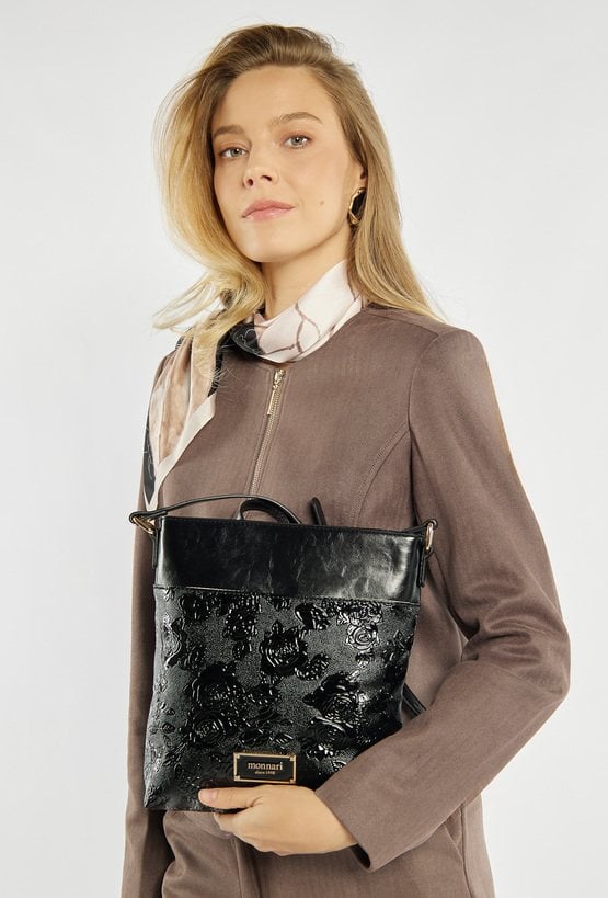 Stylowa torba o jednokomorowej budowie to praktyczny dodatek na co dzień. Wnętrze wykończone jest jasną, logowaną podszewką i wyposażone w wygodne kieszonki, które pomogą utrzymać porządek i szybko znaleźć drobiazgi. Torba ma regulowany pasek na ramię, dzięki czemu można dopasować jej długość do własnych potrzeb. Torbę należy przechowywać w dołączonym woreczku. Wymiary: 28 cm x 30 cm x 8 cm.