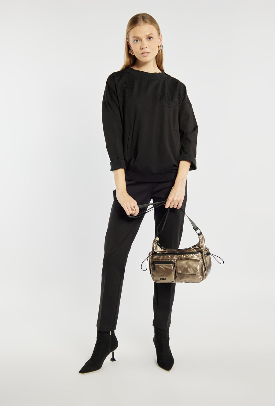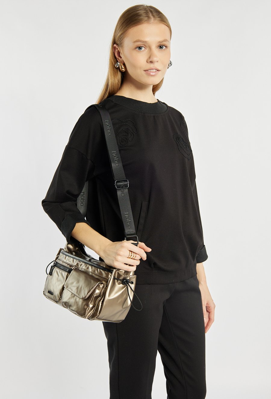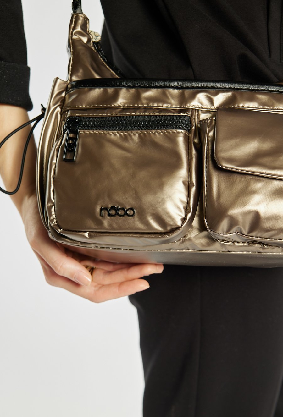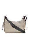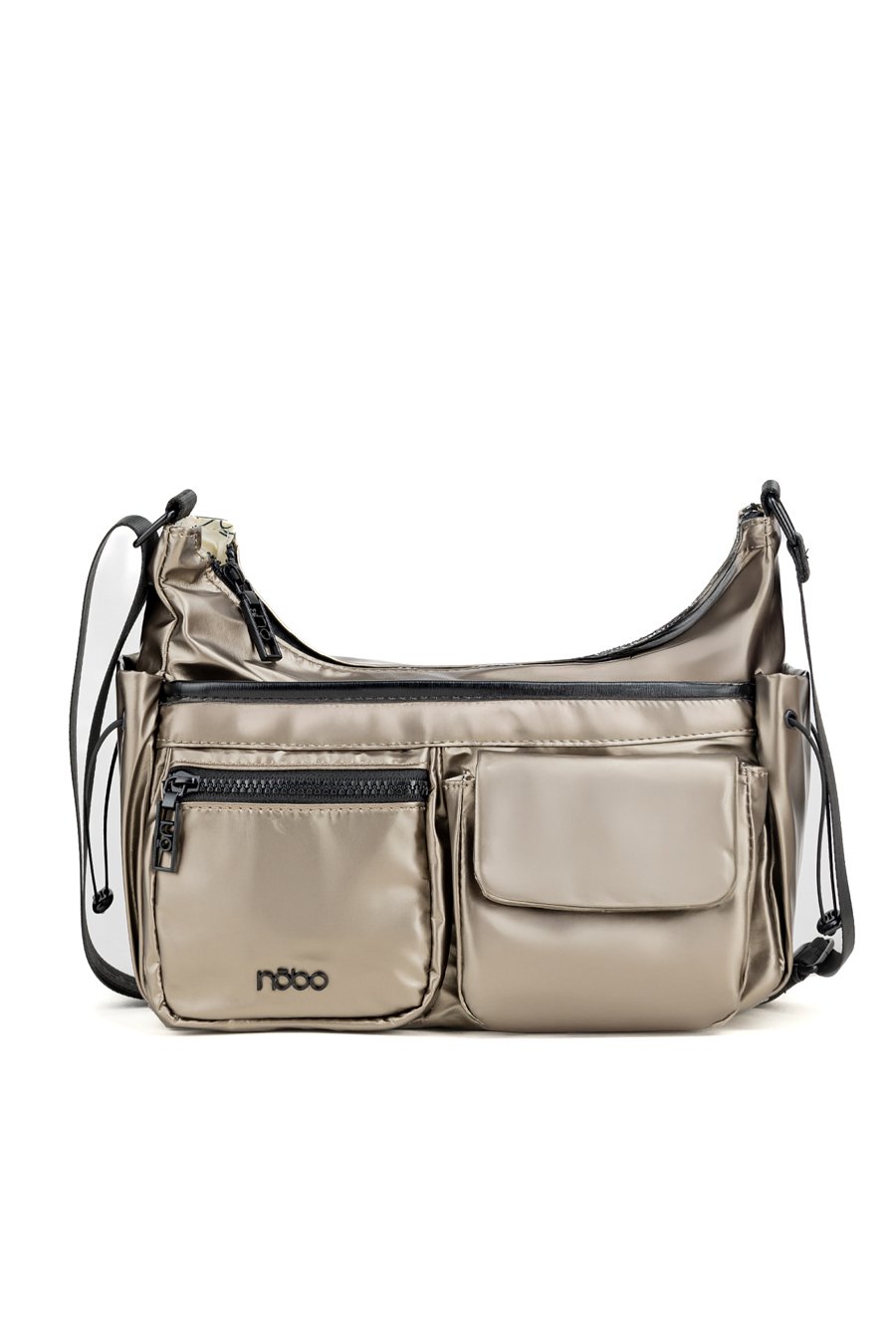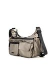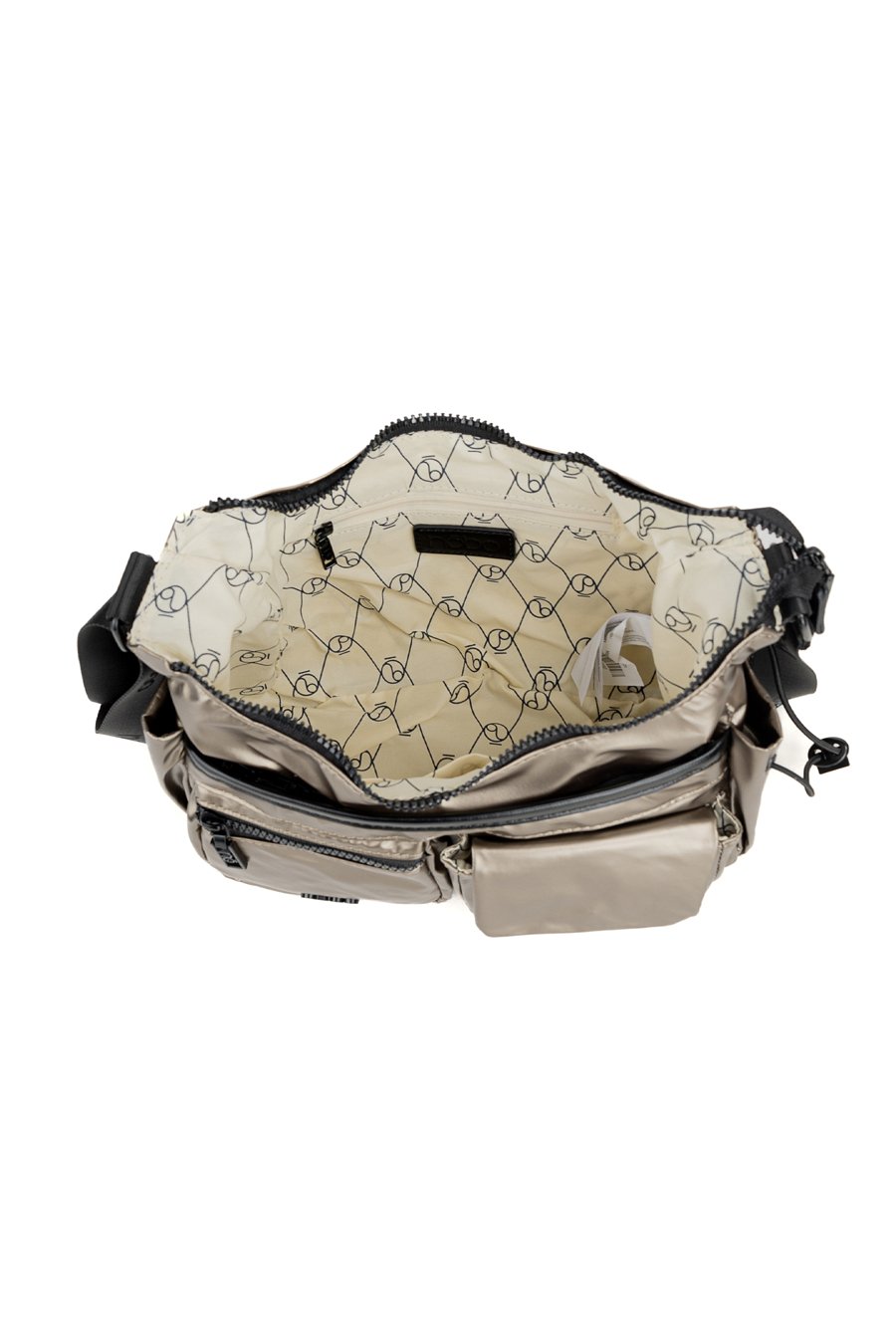 Torba damska w sportowym stylu o wymiarach 29 × 18 × 10 cm. Jednokomorowy model z jasną, logowaną podszewką oraz praktycznymi kieszonkami na drobiazgi. Zawieszona na regulowanym pasku, zapewnia wygodę noszenia. To mała torebka z licznymi kieszonkami – umieszczonymi z przodu oraz z boku. Produkt należy przechowywać w załączonym woreczku ochronnym.