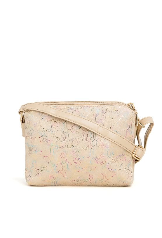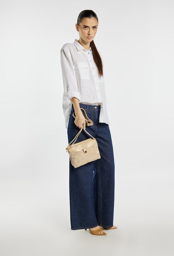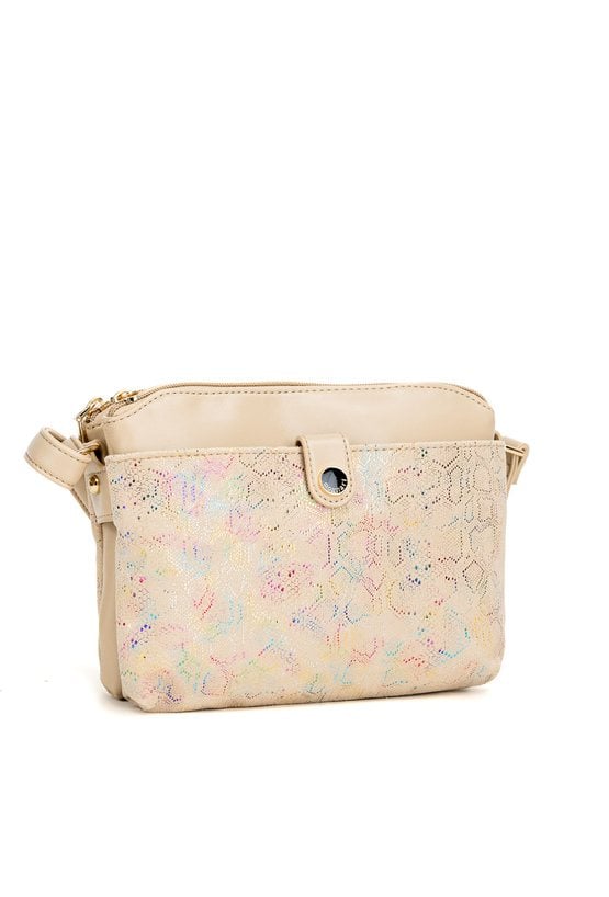 Torba damska z wzorem o wymiarach 23 × 16,5 × 5 cm to praktyczny dodatek na co dzień i na wyjścia. Torba jest dwukomorowa, ma jasne, logowane podszewki oraz dodatkowe kieszonki na drobiazgi, które ułatwiają organizację. Torba zawieszona na regulowanym pasku zapewnia wygodę noszenia na ramieniu lub crossbody. Torbę należy przechowywać w dołączonym woreczku.