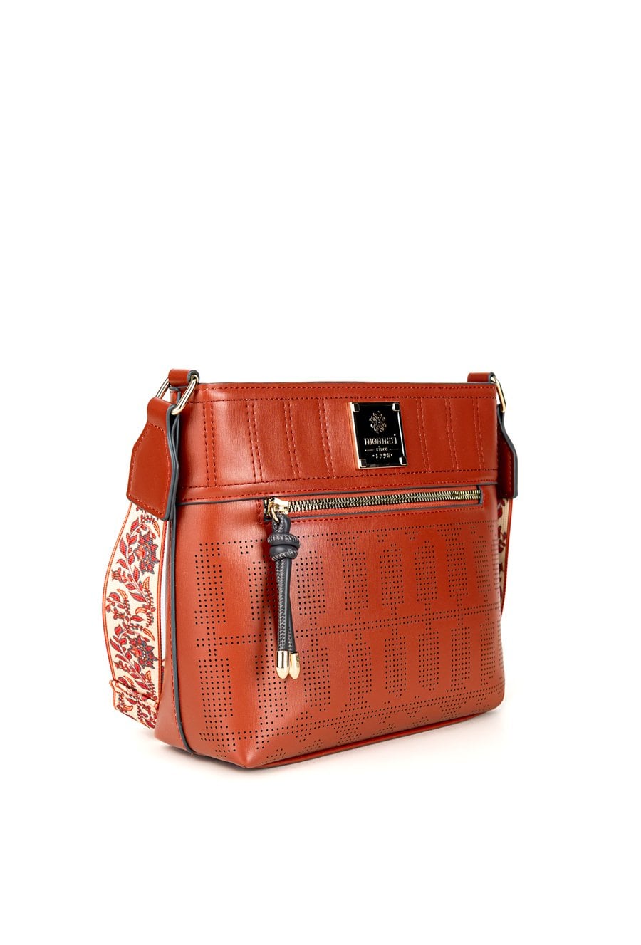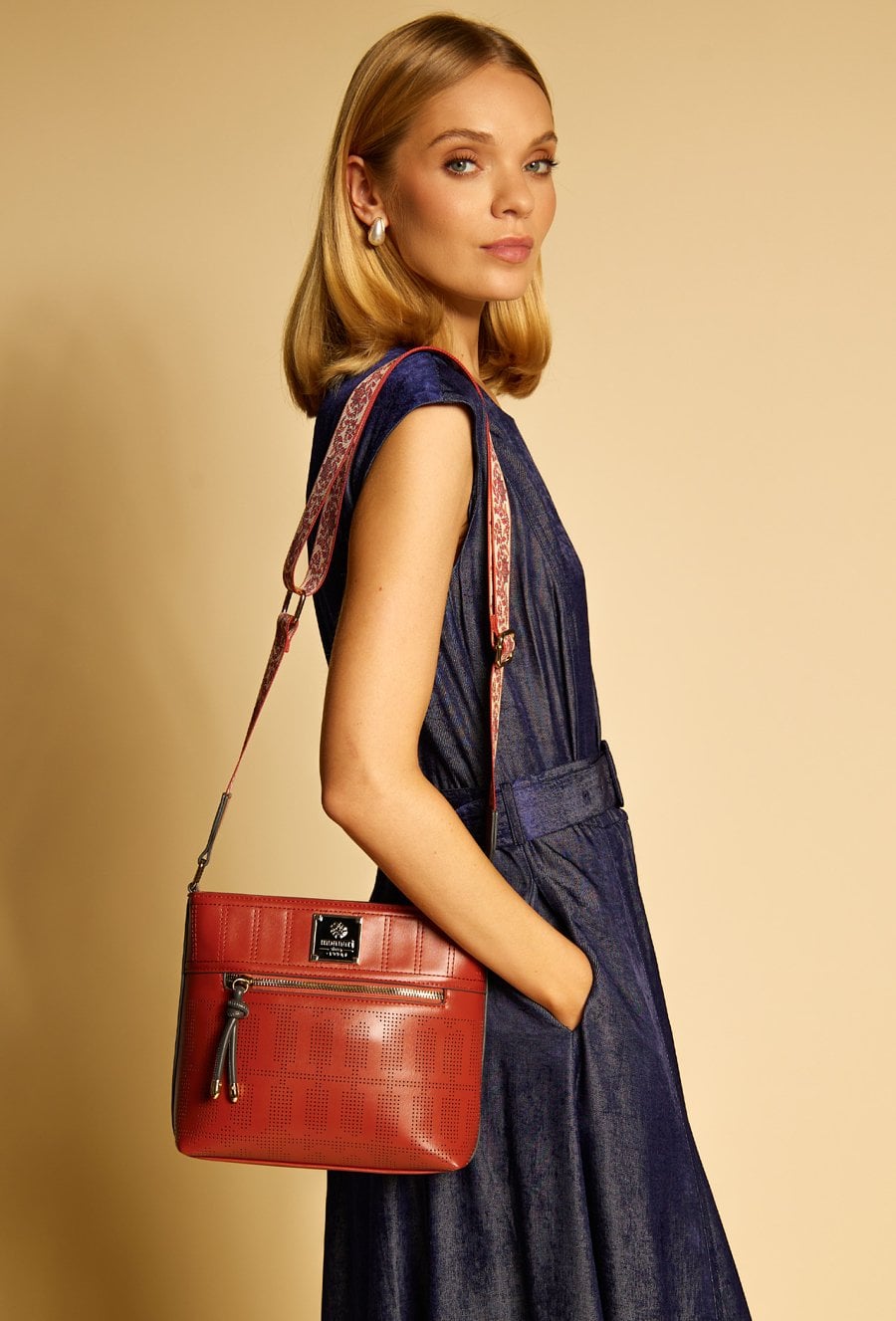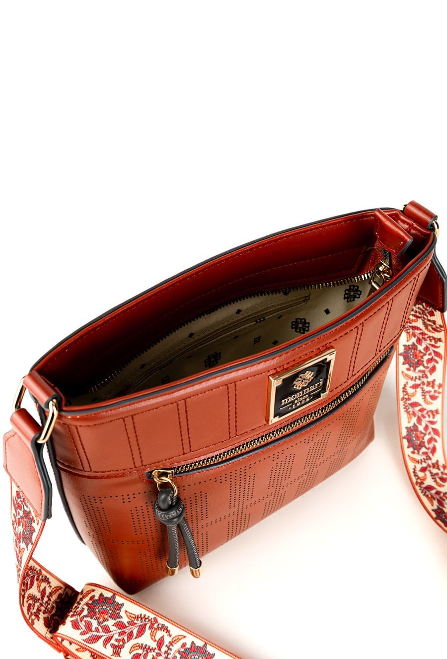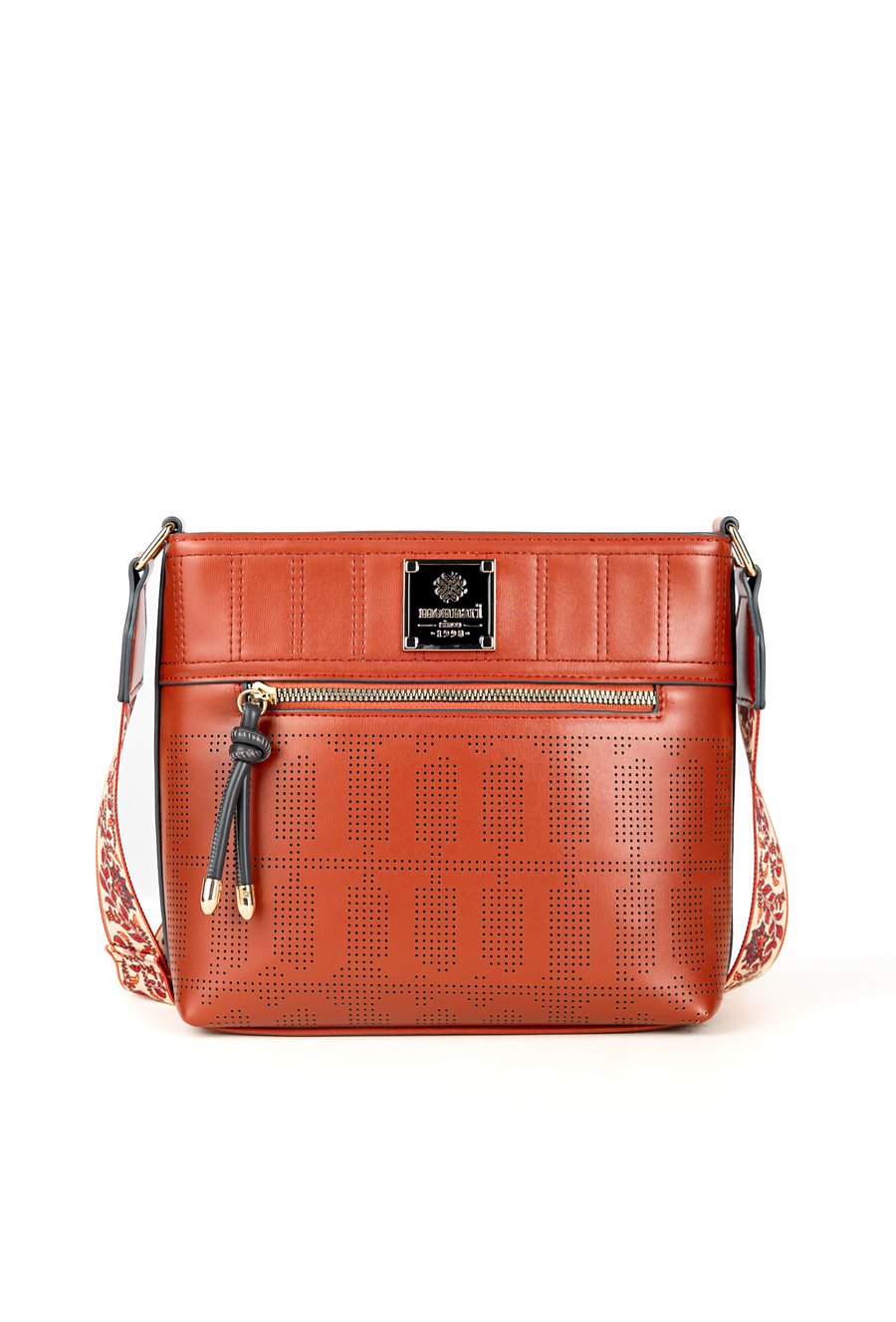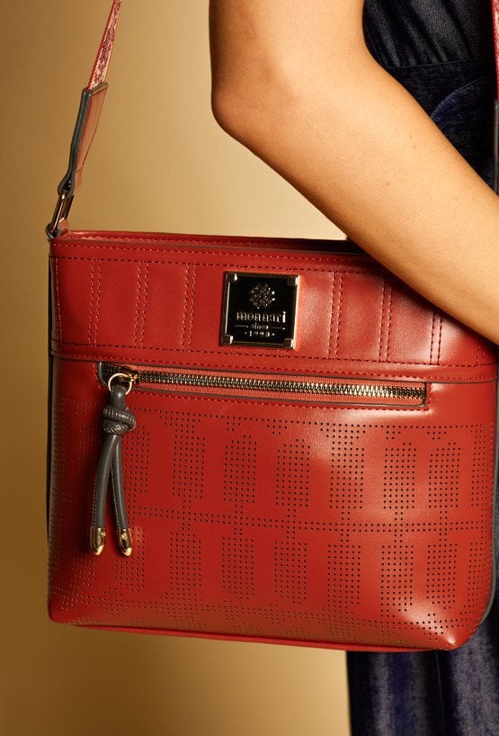 Torba damska o wymiarach 27 cm x 22 cm x 9 cm. Torba jednokomorowa, z jasną, logowaną podszewką oraz dodatkowymi kieszonkami na drobiazgi, które ułatwiają organizację. Torba zawieszona na wzorzystym, regulowanym pasku, który nadaje jej oryginalnego charakteru i zapewnia wygodę noszenia. Torbę należy przechowywać w załączonym woreczku.