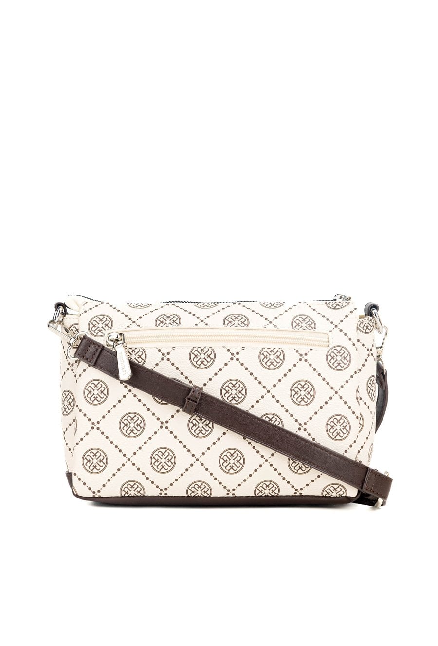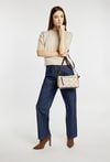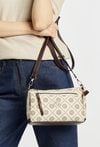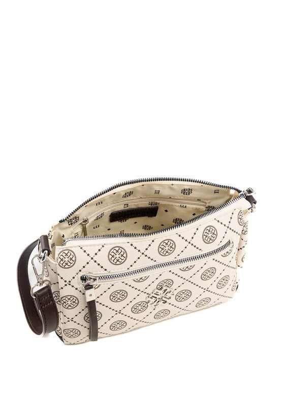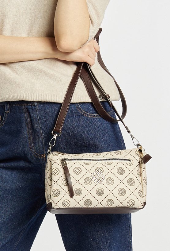 Torebka damska typu crossbody o wymiarach 24 cm x 15 cm x 9 cm. Model jednokomorowy, z jasną, logowaną podszewką oraz dodatkowymi kieszonkami na drobiazgi, które ułatwiają organizację. Torba zawieszona na regulowanym, odpinanym pasku, dzięki czemu można nosić ją na różne sposoby. Przedni panel zdobi eleganckie logo, dodające całości stylowego charakteru. Należy przechowywać w dołączonym woreczku.