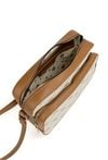 Torebka damska z logowanym wzorem o wymiarach 23 × 17,5 × 8 cm to praktyczny model na co dzień. Torba jest jednokomorowa, ma jasną, logowaną podszewkę oraz dodatkową kieszonkę z przodu zapinaną na suwak, idealną na drobiazgi. Torba zawieszona na regulowanym pasku noszona klasycznie jak crossbody zapewnia wygodę i swobodę użytkowania. Torbę należy przechowywać w dołączonym woreczku.