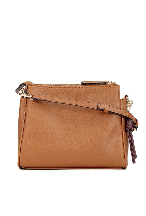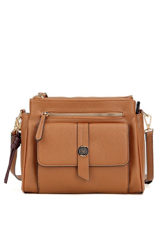 Torba damska crossbody o wymiarach 26 cm x 22 cm x 9,5 cm. Model trzykomorowy, z jasnymi, logowanymi podszewkami. Dwie komory zapinane są na suwak, natomiast środkowa zamykana na napę. Funkcjonalności torby dopełniają dwie przednie kieszonki – jedna zapinana na suwak, druga zamykana klapą. Stylowa i praktyczna, doskonała na co dzień. Torbę należy przechowywać w dołączonym woreczku.