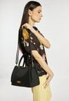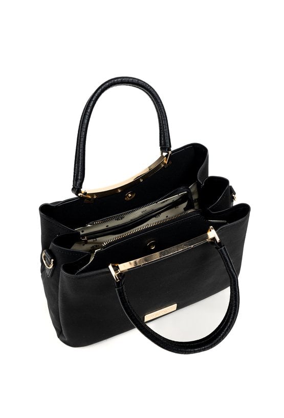 Torba damska o wymiarach 29 × 20 × 12 cm to praktyczny i elegancki model na co dzień. Torba jest jednokomorowa z trzema przegródkami (jedna zapinana na suwak oraz dwie na napy) a dodatkowe kieszonki wewnątrz idealnie sprawdzają się na drobiazgi. Torba zawieszona na rączkach, w zestawie ma pasek z możliwością regulacji, co pozwala dopasować sposób noszenia do własnych potrzeb.