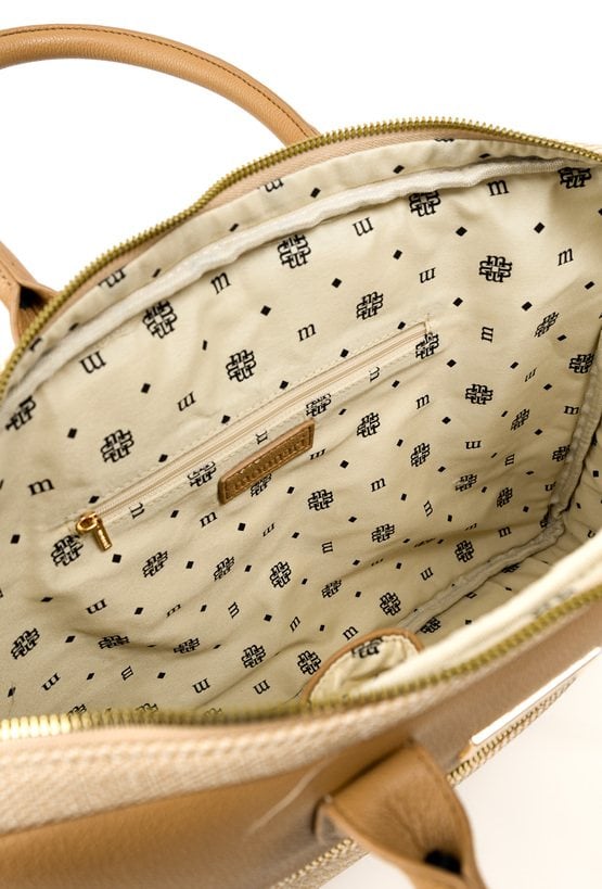 Aktówka damska o wymiarach 39 cm x 31 cm x 6 cm. Torba jednokomorowa, z jasną, logowaną podszewką oraz dodatkowymi kieszonkami na drobiazgi, które ułatwiają organizację. Torba zawieszona na rączkach, a w zestawie znajduje się regulowany pasek, umożliwiający noszenie jej na ramieniu. Praktyczna, pojemna i stylowa – doskonale sprawdzi się zarówno w pracy, jak i na co dzień. Torbę należy przechowywać w dołączonym woreczku.