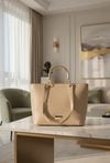 Duża torba damska o wymiarach: 38 cm x 26 cm x 10 cm. Torba jednokomorowa o jasnej, logowanej podszewce z dodatkowymi kieszonkami. Model zawieszony na dwóch rodzajach rączek — krótszych do noszenia w dłoni oraz dłuższych, umożliwiających wygodne noszenie na ramieniu. Subtelne logo marki Monnari na przedzie dodaje całości szyku i podkreśla markowy charakter dodatku. Torbę należy przechowywać w załączonym woreczku.