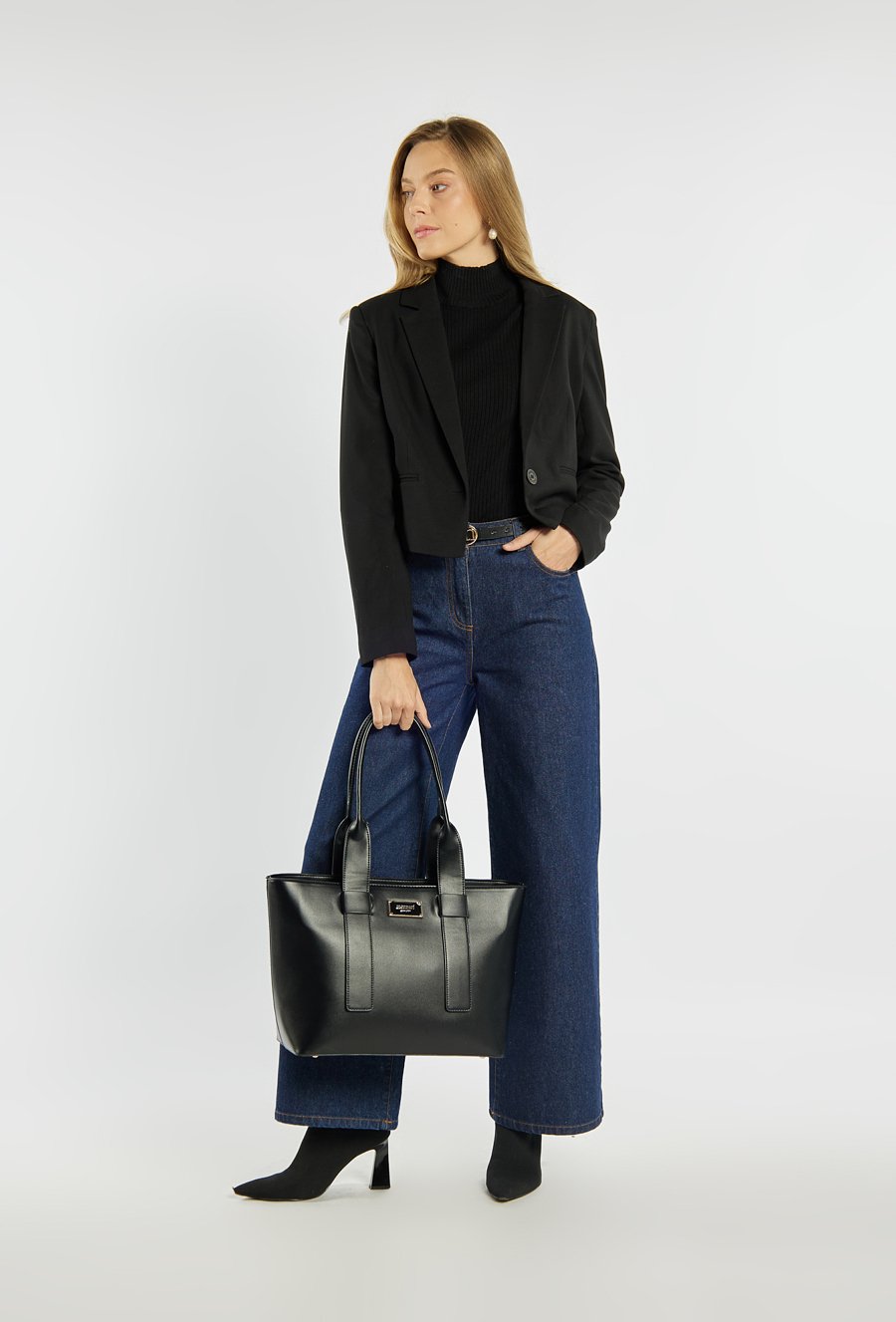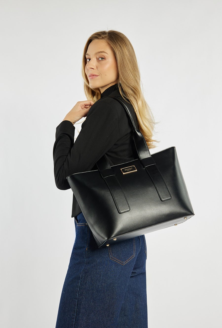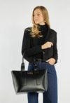 Duża torba damska o wymiarach 47 × 28 × 16 cm, doskonała do biura i na co dzień. Jednokomorowy model z jasną, logowaną podszewką oraz praktycznymi kieszonkami na drobiazgi. Zawieszona na wygodnych rączkach, łączy funkcjonalność z eleganckim stylem. Torbę należy przechowywać w dołączonym woreczku.