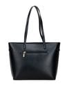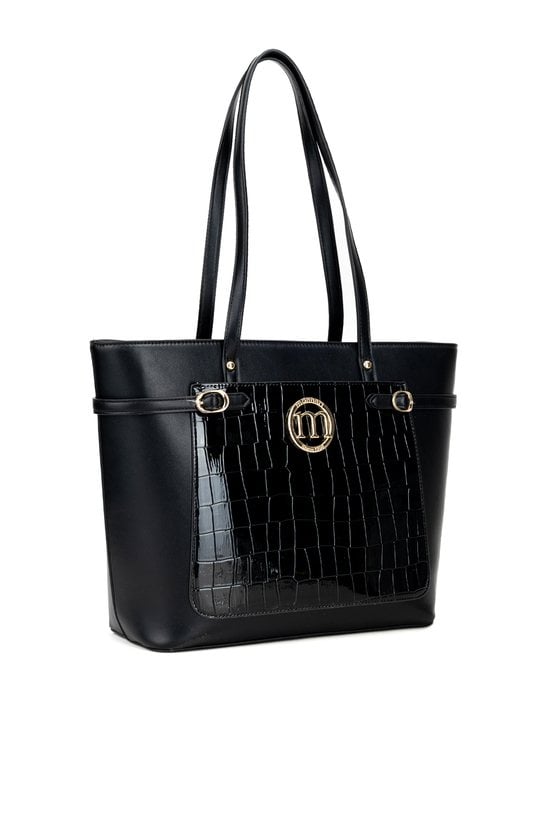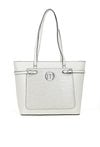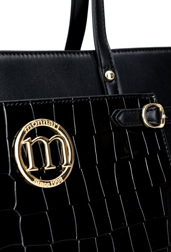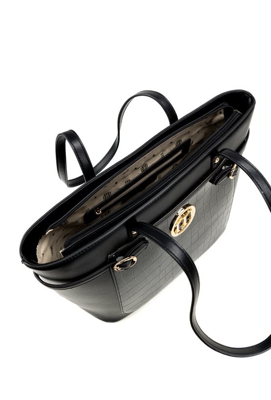 Duża torba damska typu shopper o wymiarach 40 × 28 × 14 cm to pojemny i wygodny wybór na co dzień. Torba jest jednokomorowa, wykończona jasną, logowaną podszewką oraz dodatkowymi kieszonkami na drobiazgi. Torba wyróżnia się praktyczną kieszonką z przodu ozdobioną delikatnym wzorem. Torbę należy przechowywać w dołączonym woreczku.