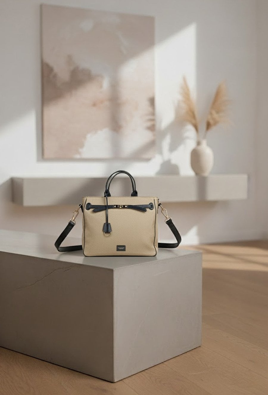Duża torba damska o wymiarach 42 × 29 × 10 cm. Jednokomorowy model z jasną, logowaną podszewką oraz praktycznymi kieszonkami na drobiazgi. Idealna również na laptopa, zawieszona na rączkach, a w zestawie znajduje się regulowany pasek. Należy przechowywać w załączonym woreczku.