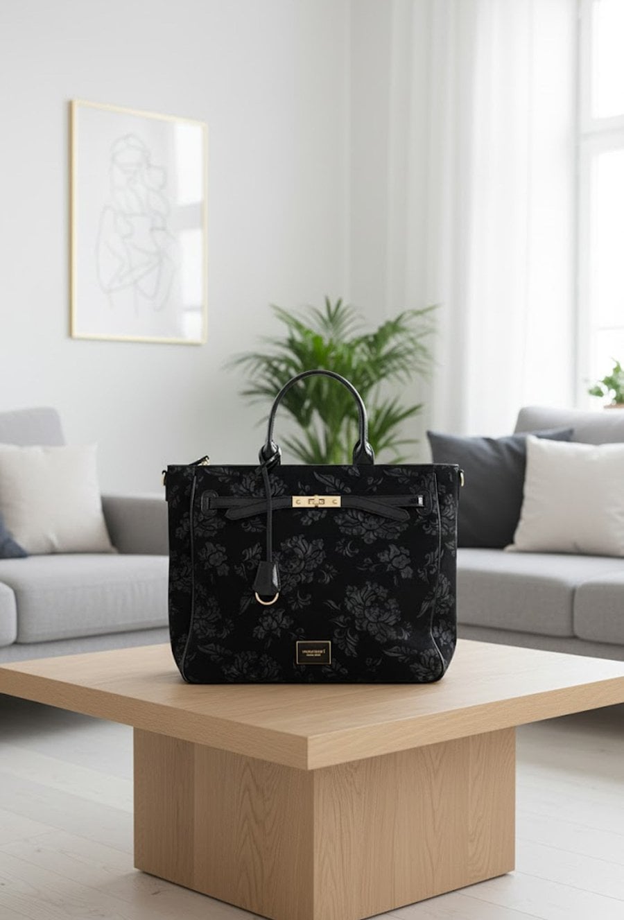Duża torba damska o wymiarach 42 × 29 × 10 cm. Jednokomorowy model z jasną, logowaną podszewką oraz praktycznymi kieszonkami na drobiazgi. Idealna również na laptopa, zawieszona na rączkach, a w zestawie znajduje się regulowany pasek. Należy przechowywać w załączonym woreczku.