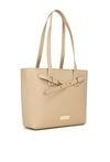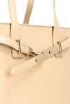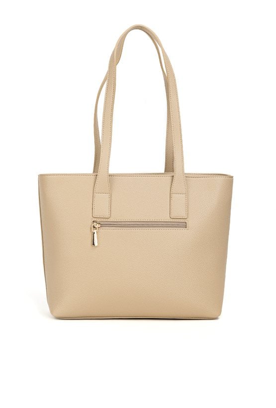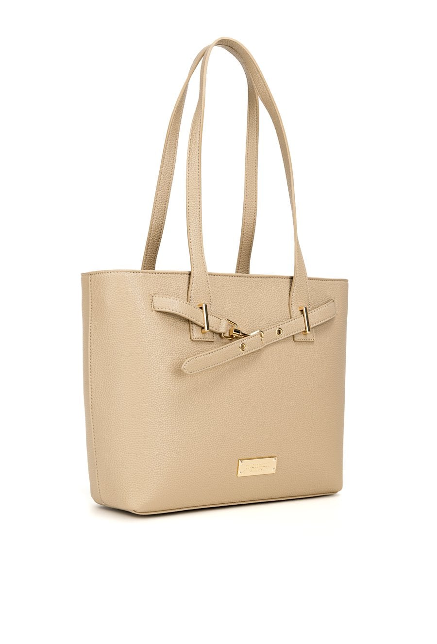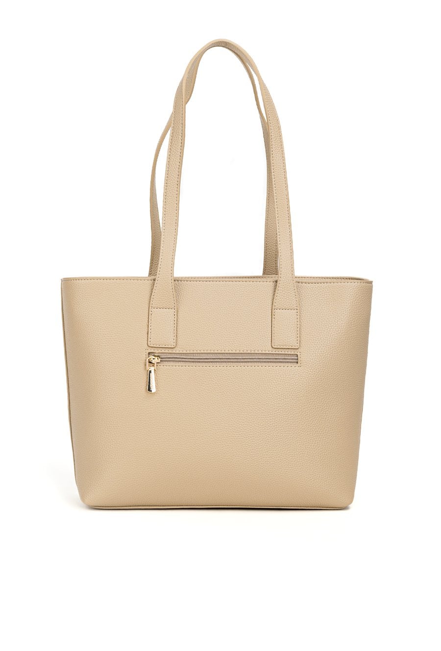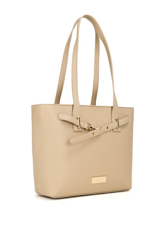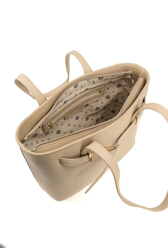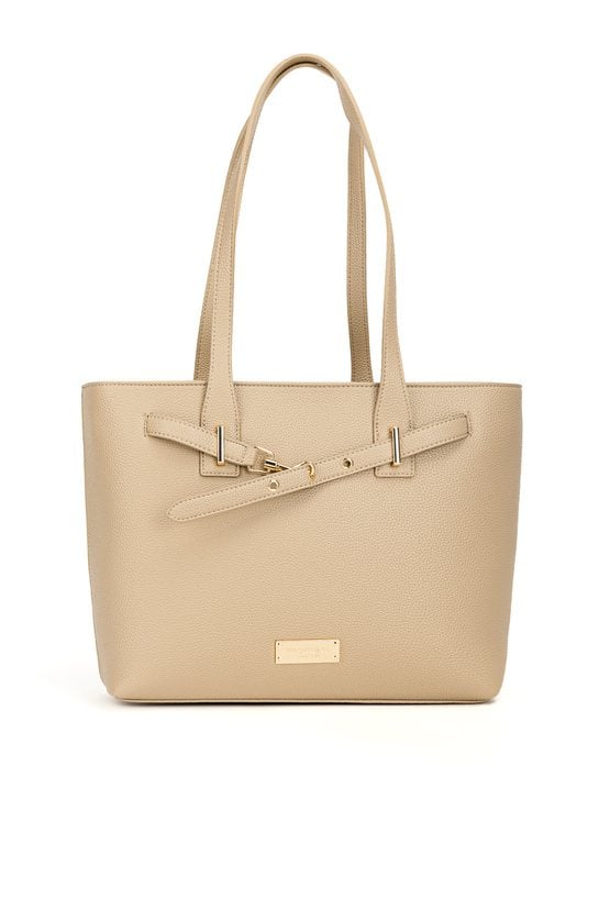 Torba damska typu shopper o wymiarach 38 × 27,5 × 14 cm to pojemny i stylowy wybór na co dzień, do pracy lub na zakupy. Torba jest jednokomorowa, wykończona jasną, logowaną podszewką oraz dodatkowymi kieszonkami na drobiazgi. Torba wyróżnia się ozdobnym paskiem z przodu. Torbę należy przechowywać w dołączonym woreczku.